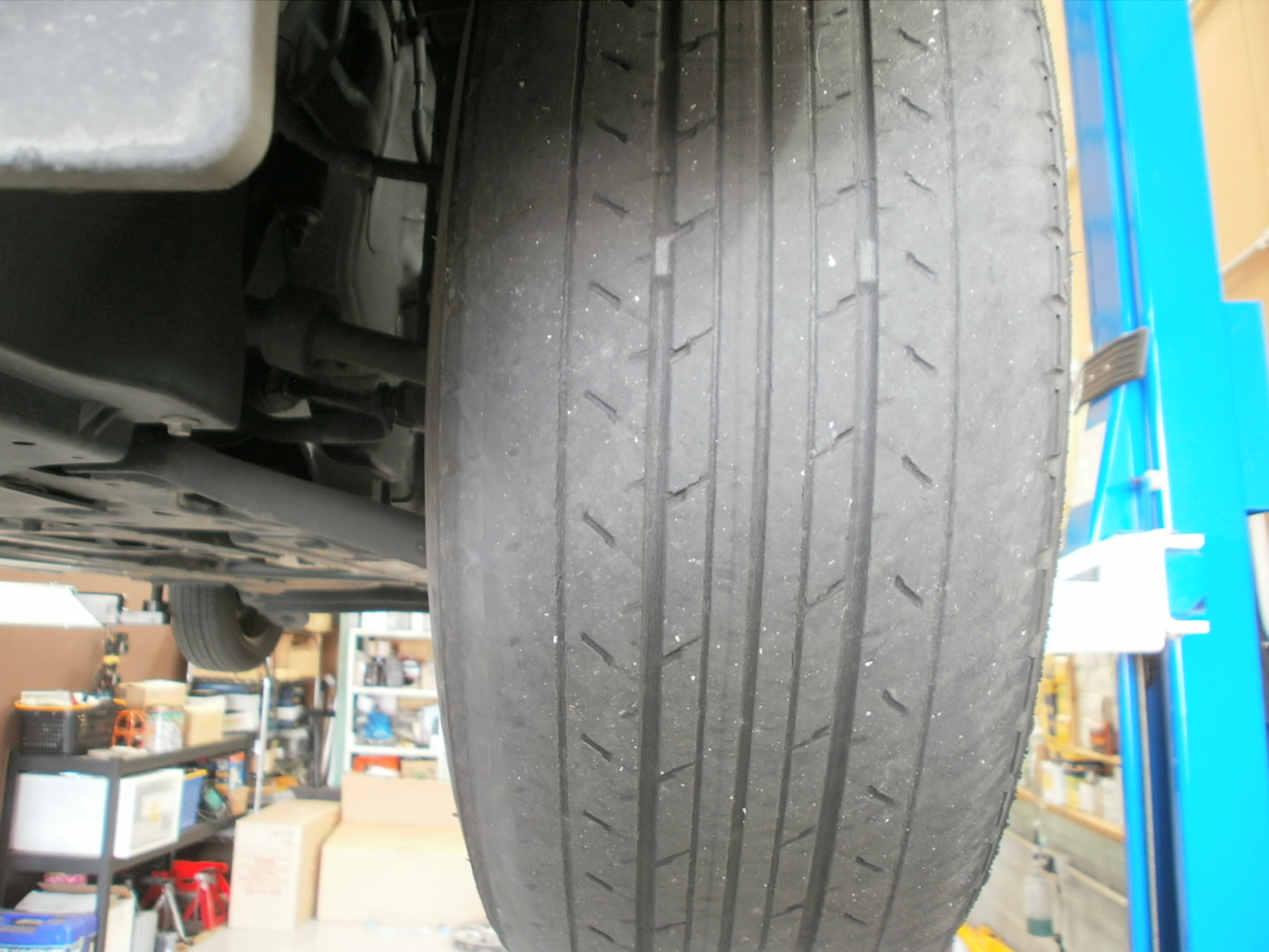 タイヤ2本、スリップサインが出ており、新品タイヤへ交換。