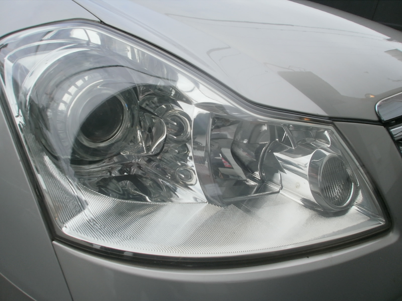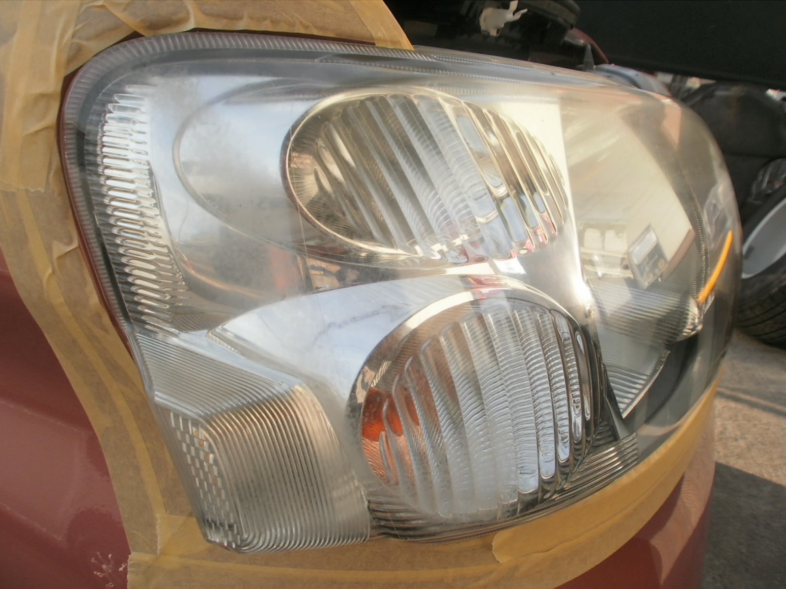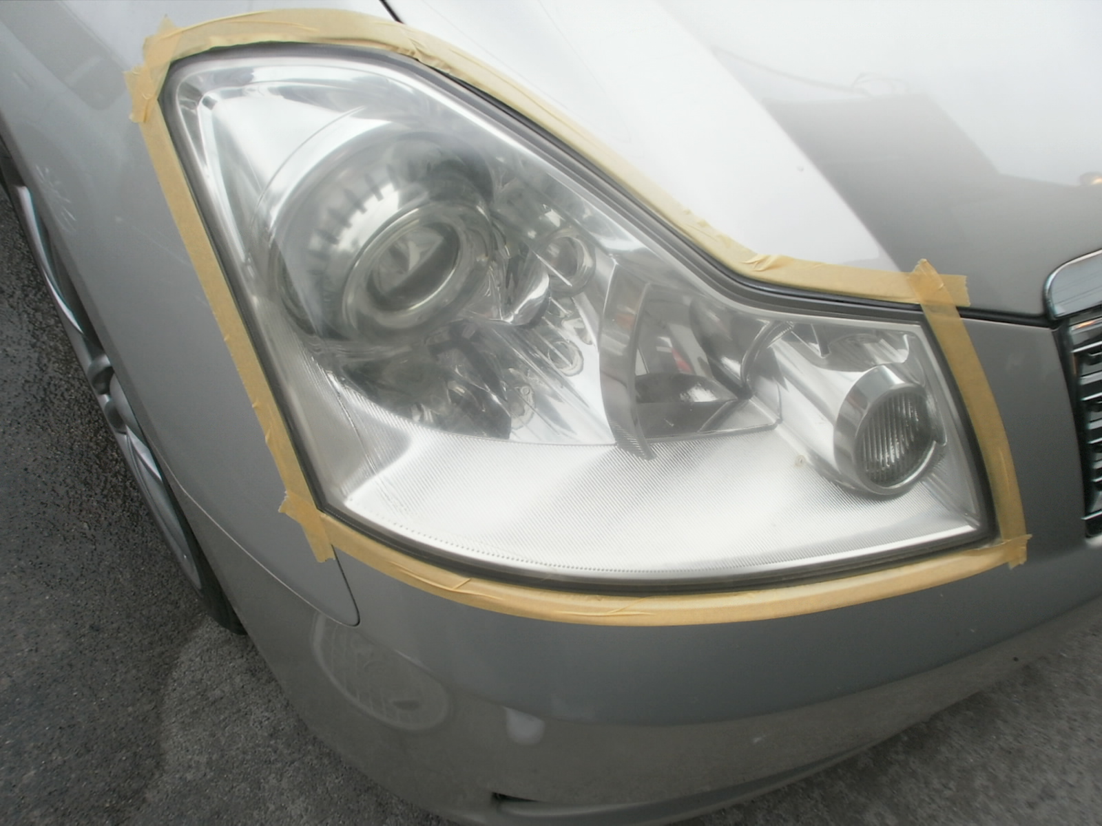 くすみがひどく、研磨作業からしていきました。写真では分かりにくいですが、ずいぶん、透明感が出て、前から見たときに引き締まってみえますね(^^♪