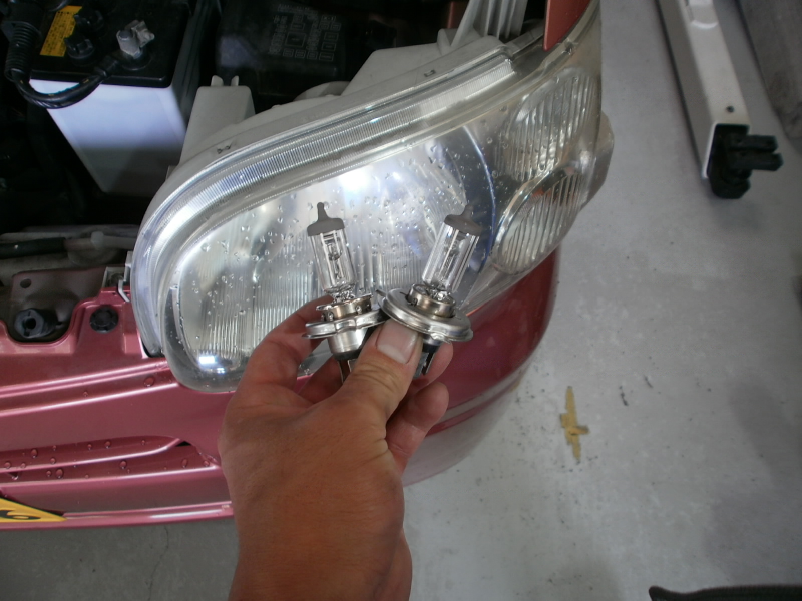 消耗品のリフレッシュ部品交換です。ヘッドライトバルブも切れかけておりましたので、事前に交換しておきましょう。