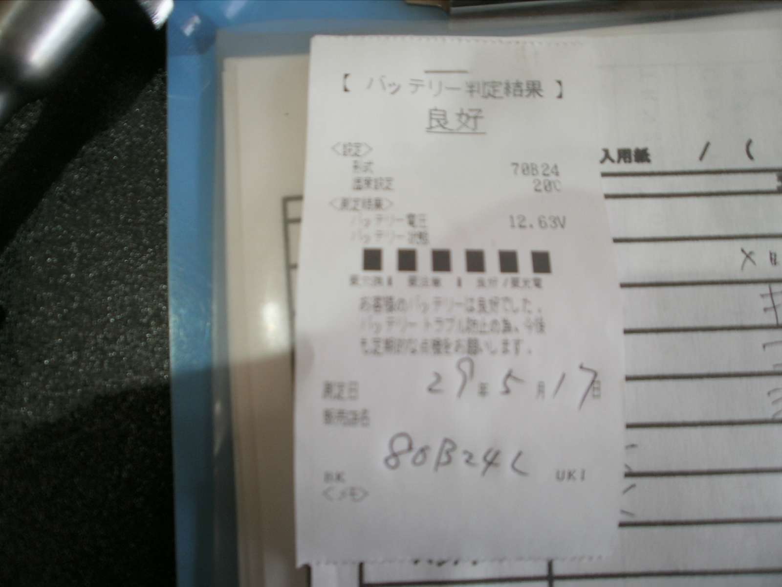 スターターバッテリー、約5年経過しておりました。今は使えていても、急にあがってしまう可能性も非常に高くなります。出先などで起きた場合、かなり大変だと思います、、、早めの交換が大切ですね(#^^#)