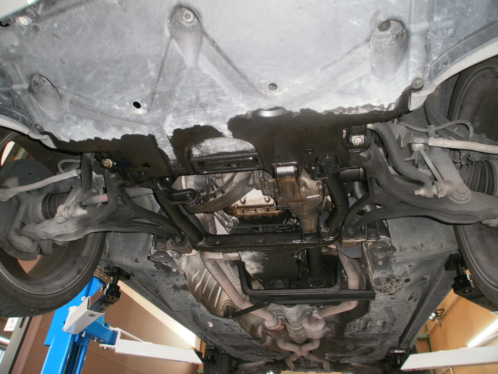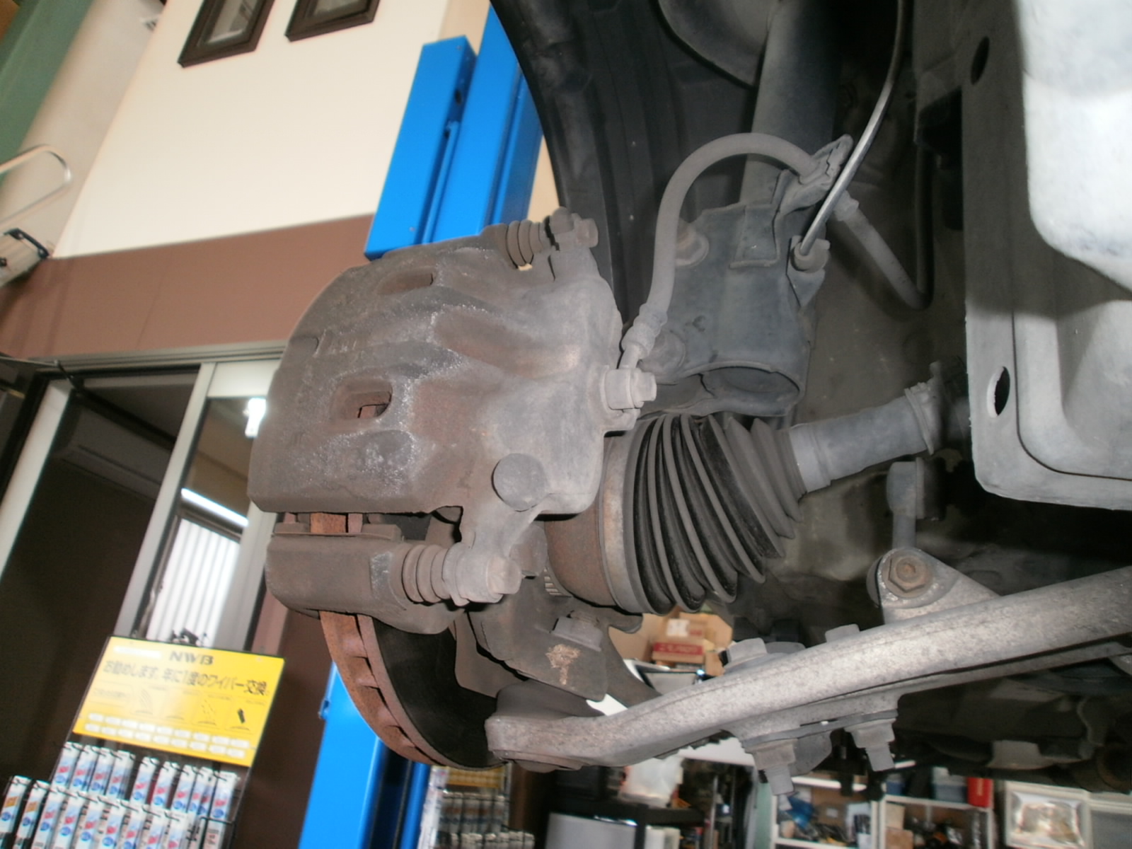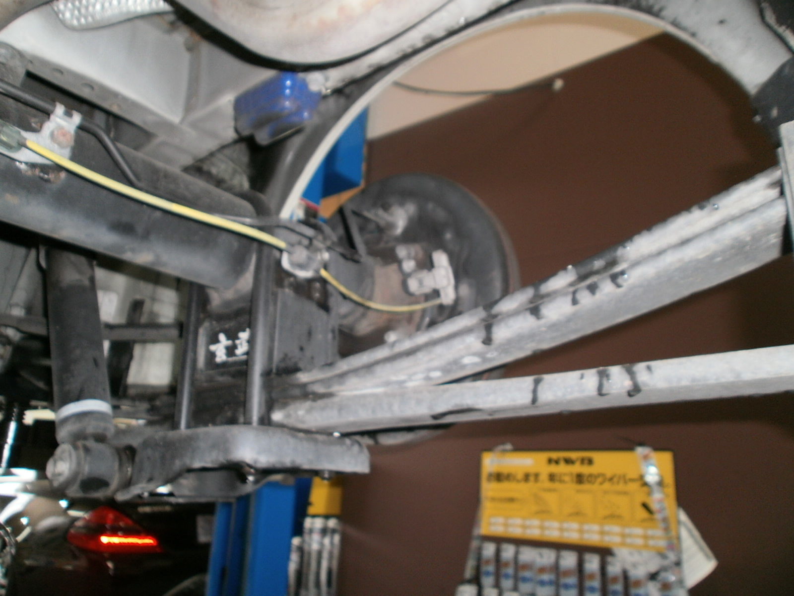 リフトアップし、下廻り・足廻りの各種点検です。