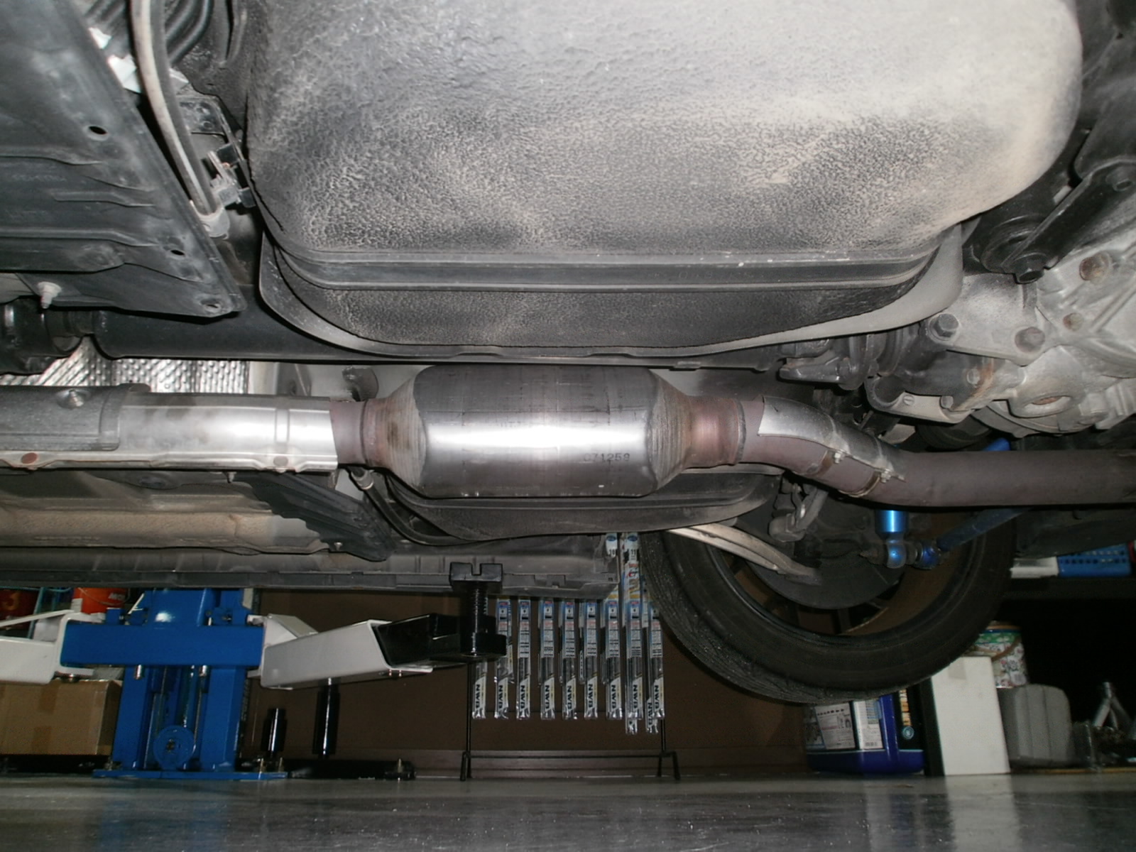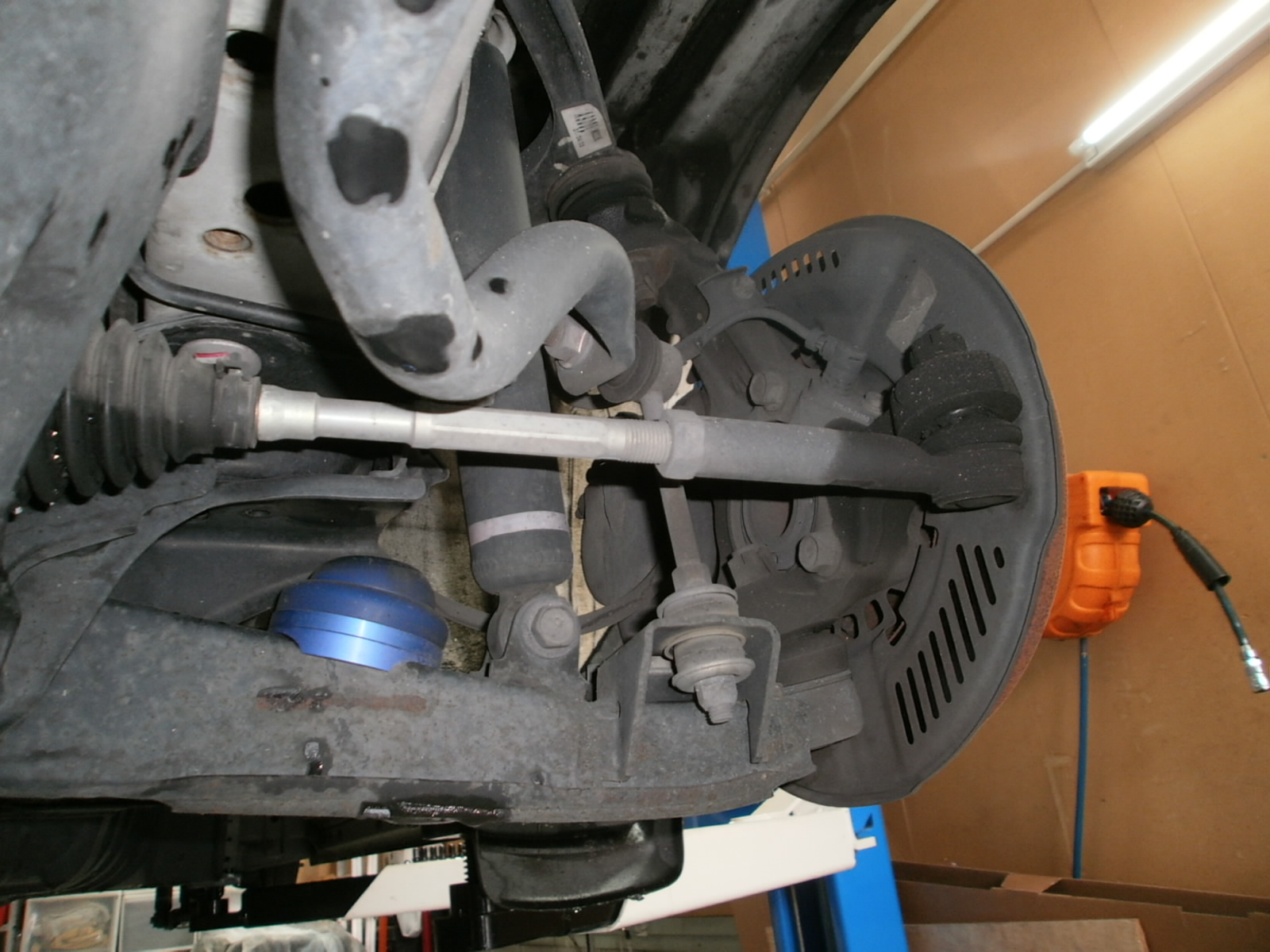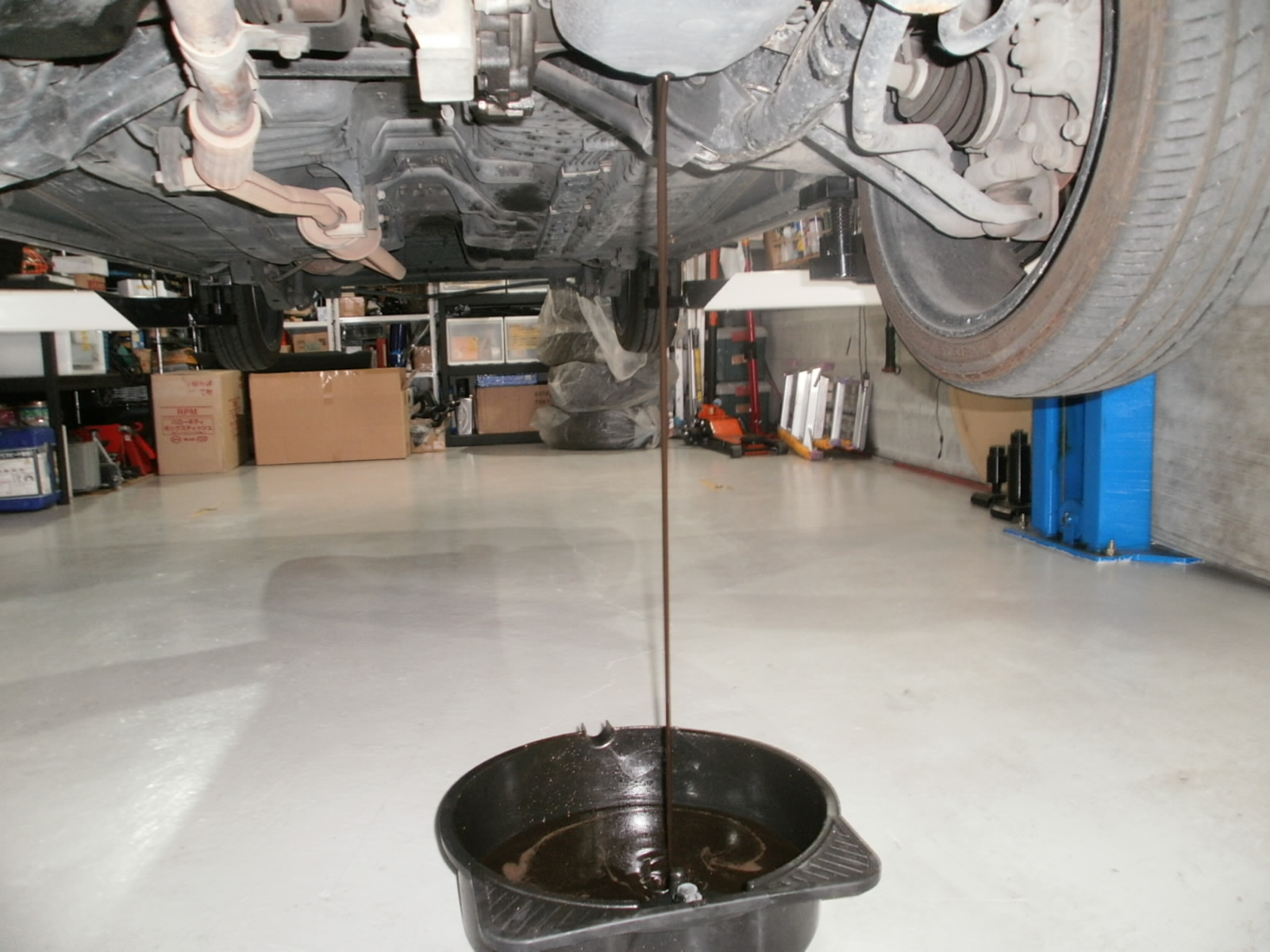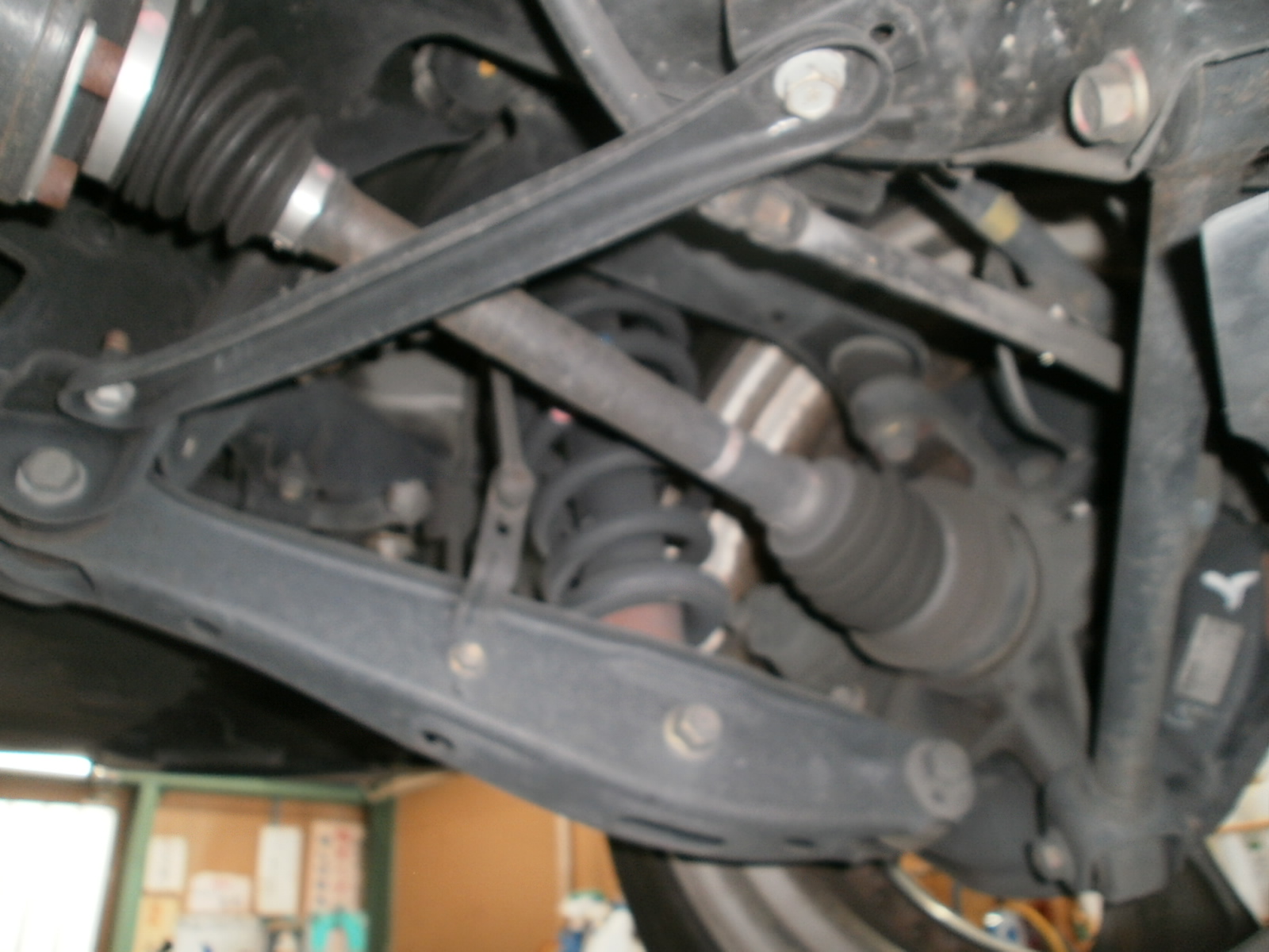 リフトアップし、下廻り・足廻りの各種点検です。
