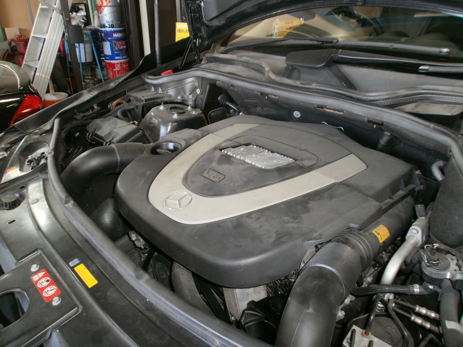 O様 ML350 オイル漏れ・水漏れにて点検ご入庫です。