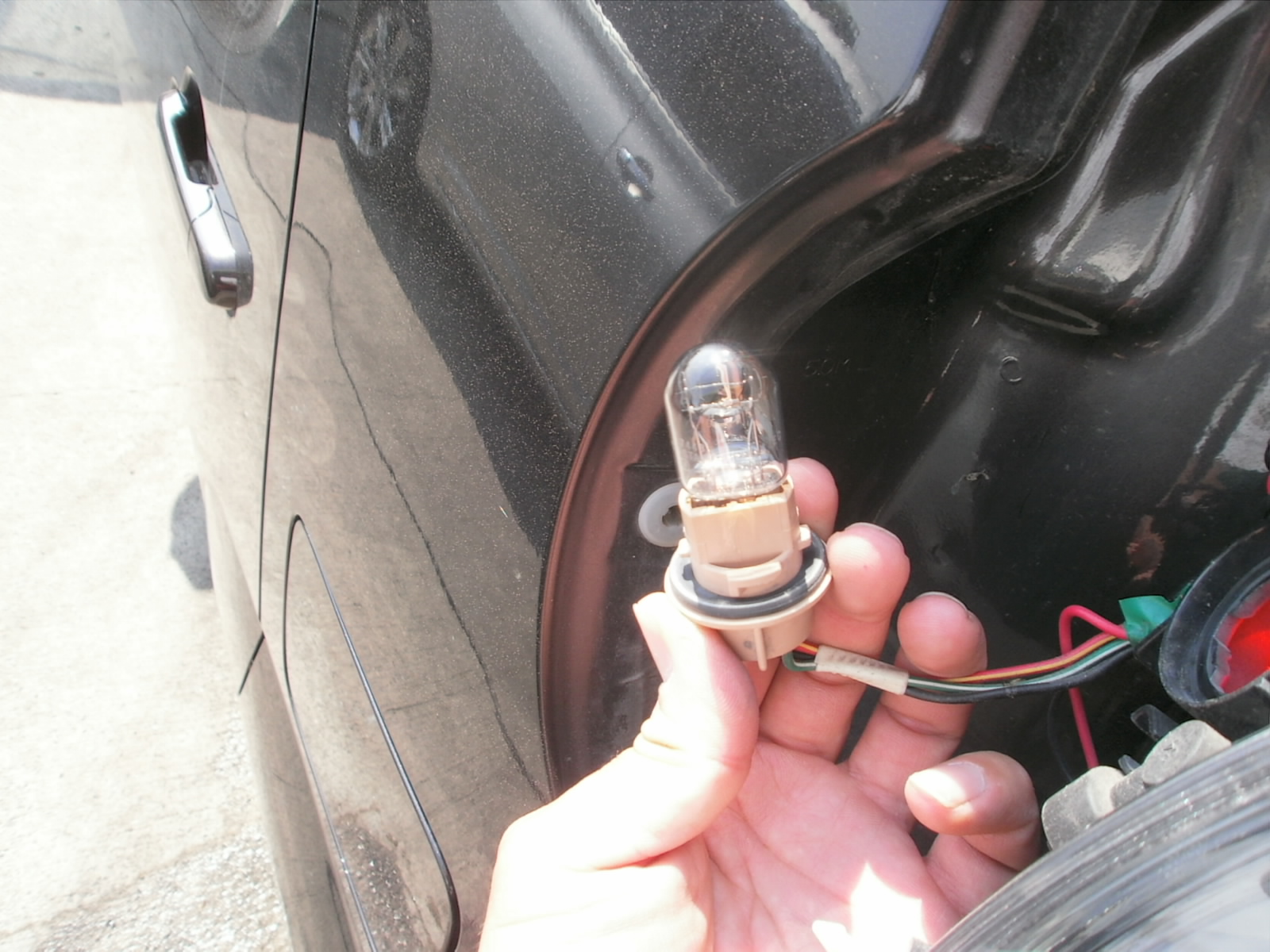 リア左のストップランプバルブが切れておりました。切れていると、夜間や後方車両にも分かりづらいので事故の可能性も。お待ち時間で交換できますので、お気軽にお申し付けください。