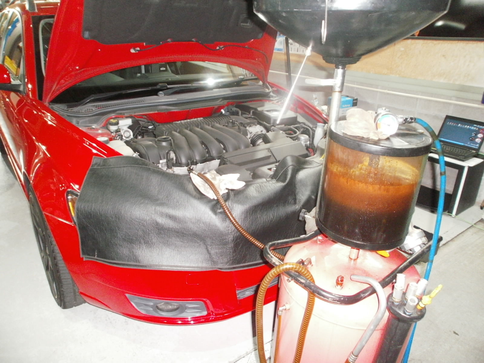 入庫の際には症状が出ておらず、走行中に変速不良が起きたようです。走行距離も多いお車ですので、メンテナンスもかねて、ATFを交換させていただきました。
