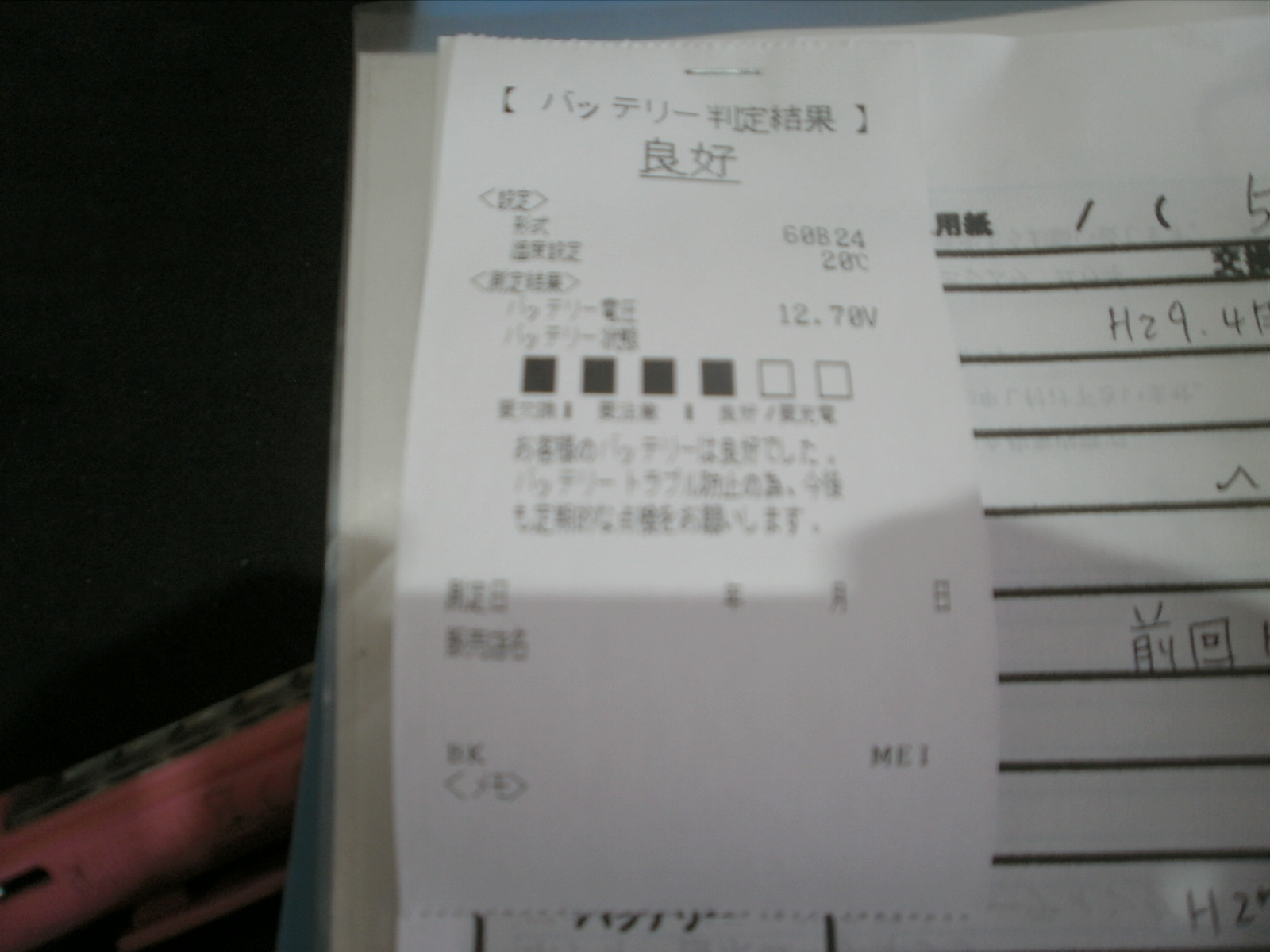 ブレーキオイルの交換、スターターバッテリーが前回交換より交換年数が来ておりましたので、部品発注させていただき、後日入荷にあわせて交換作業いたします。