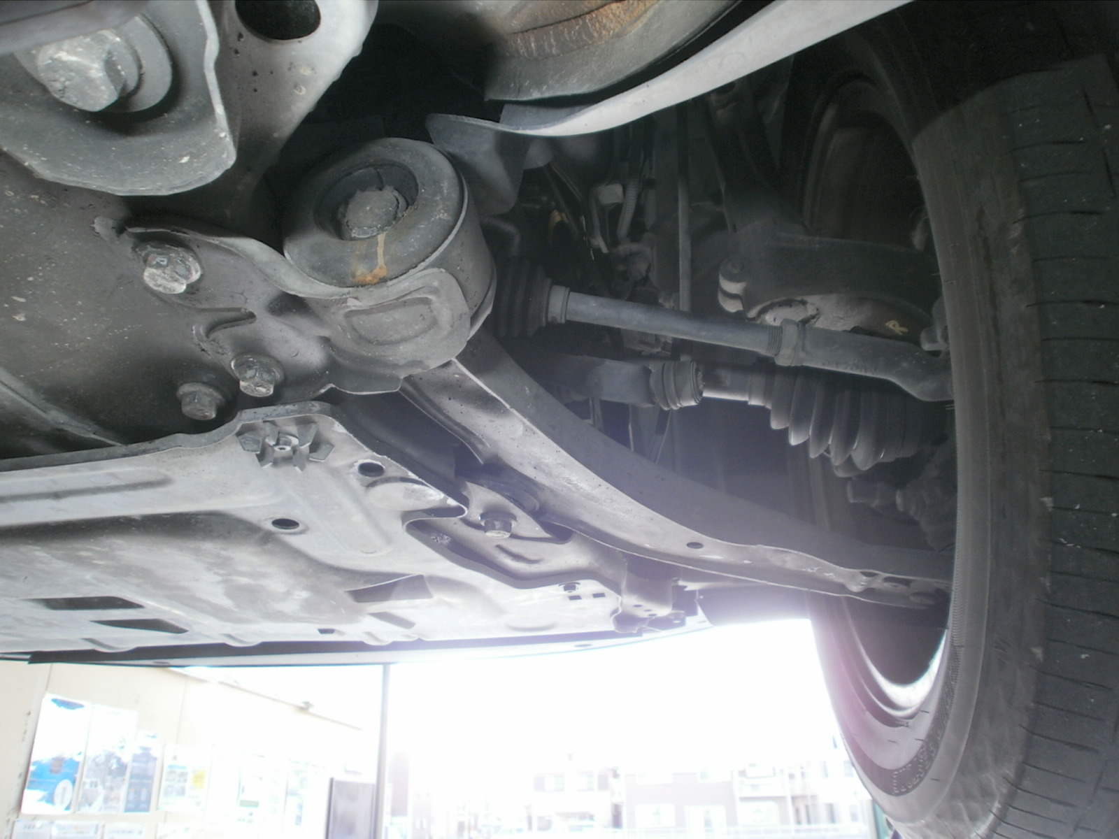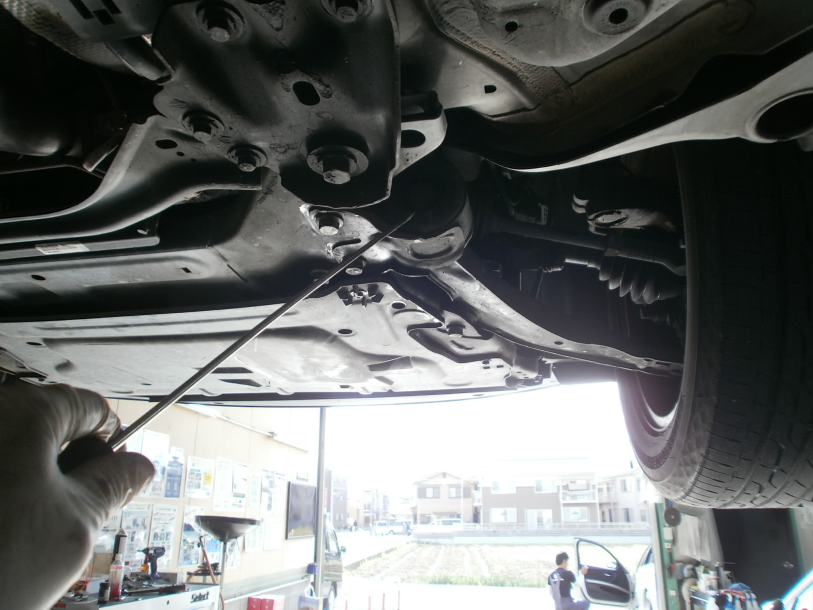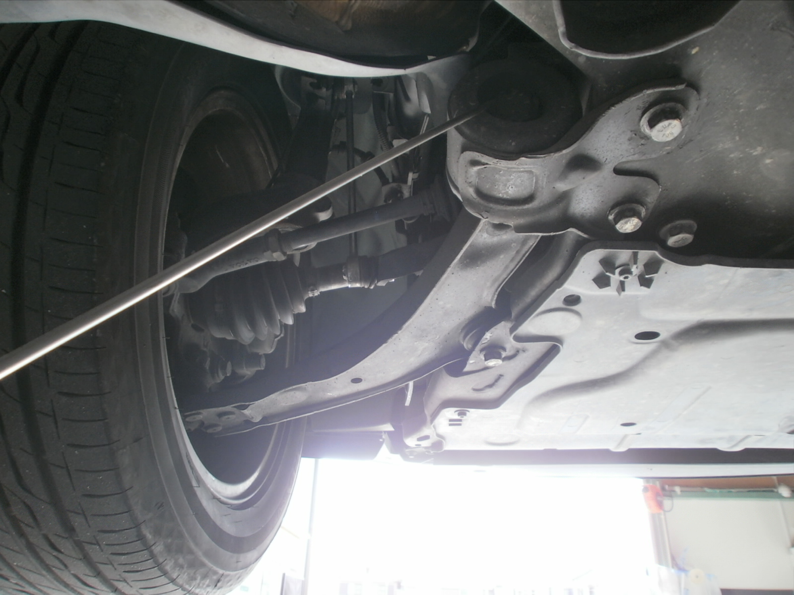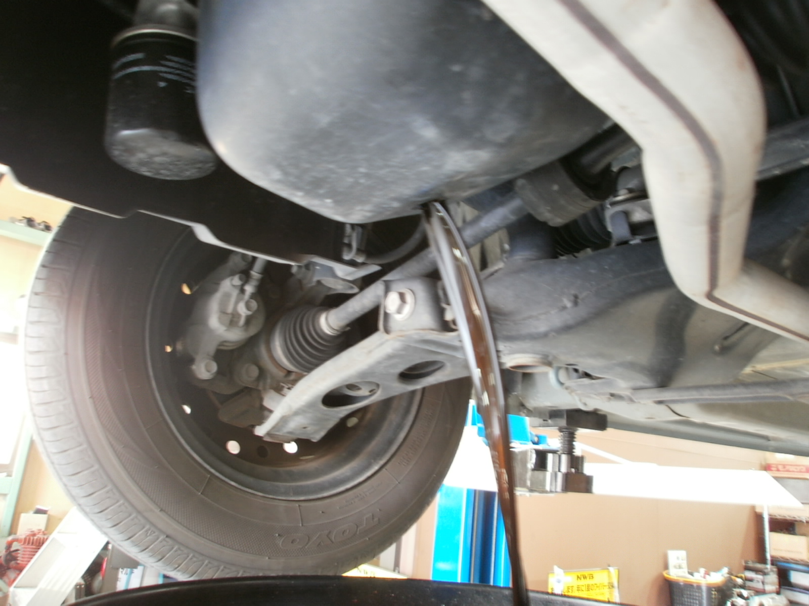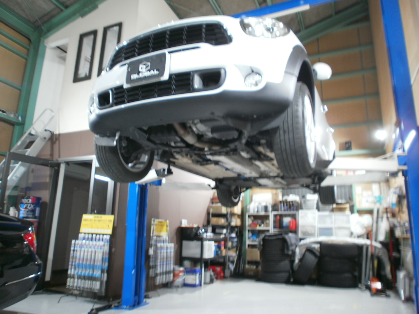 リフトアップし、各箇所点検していきます。ただいま点検診断中ですので、診断結果お見積併せご連絡を差し上げます。今しばらくお待ちくださいませ!