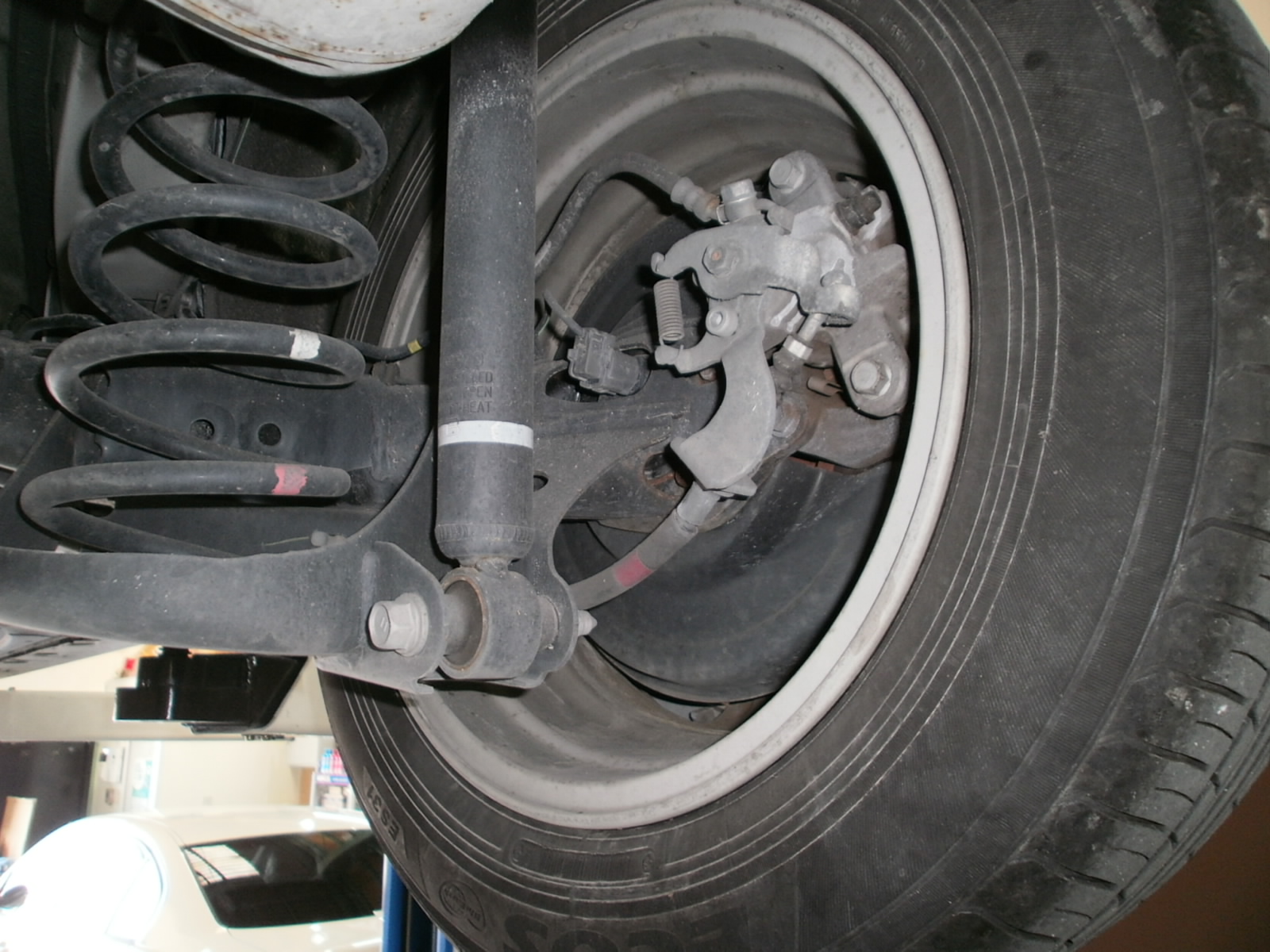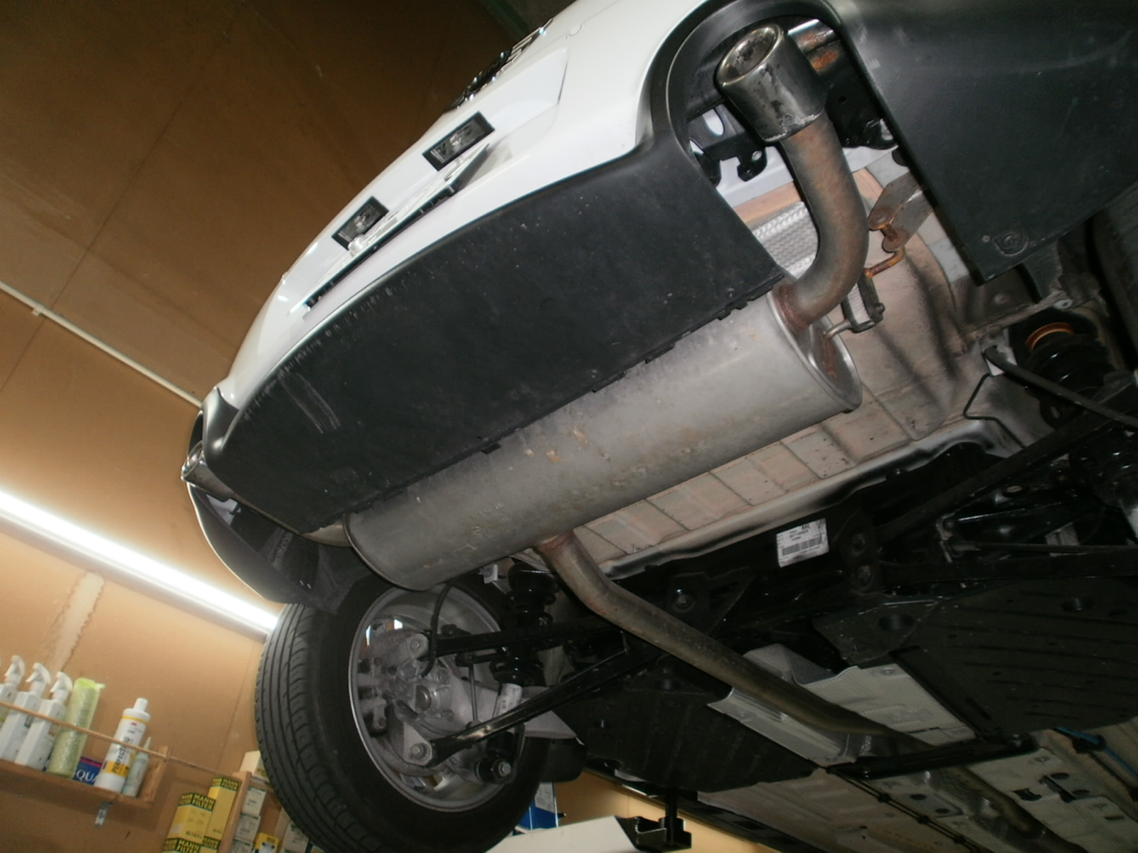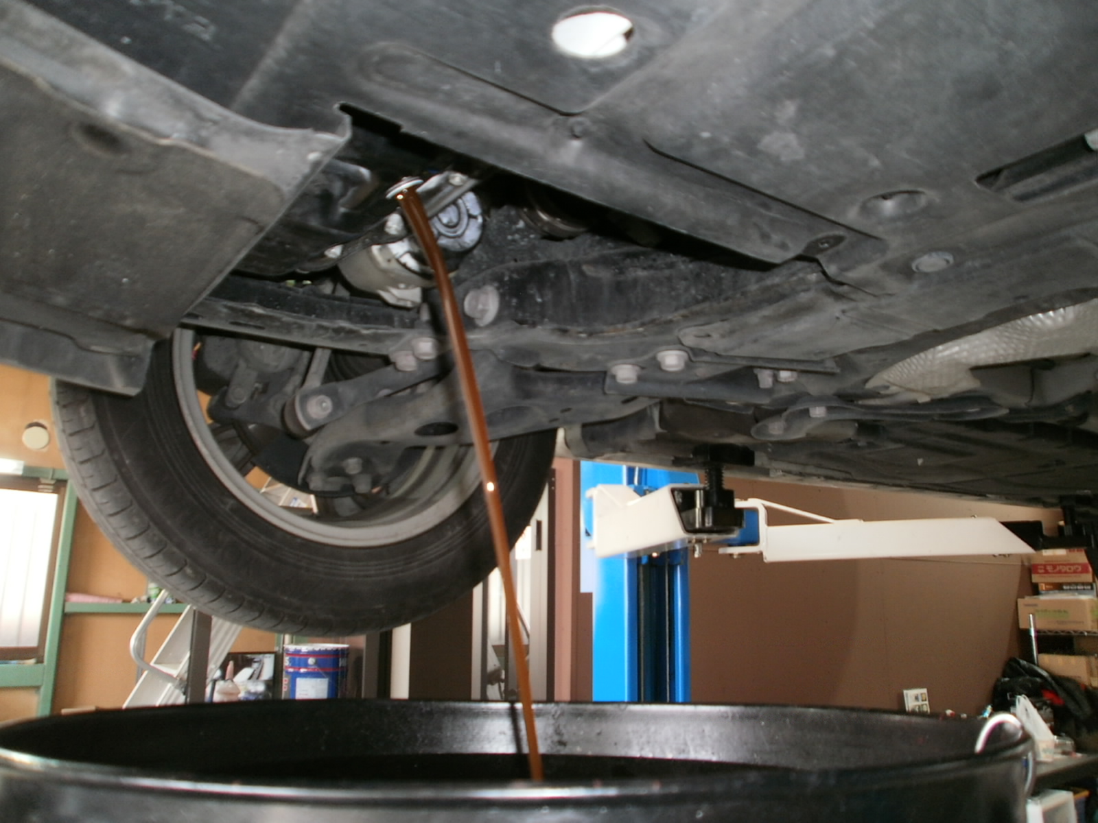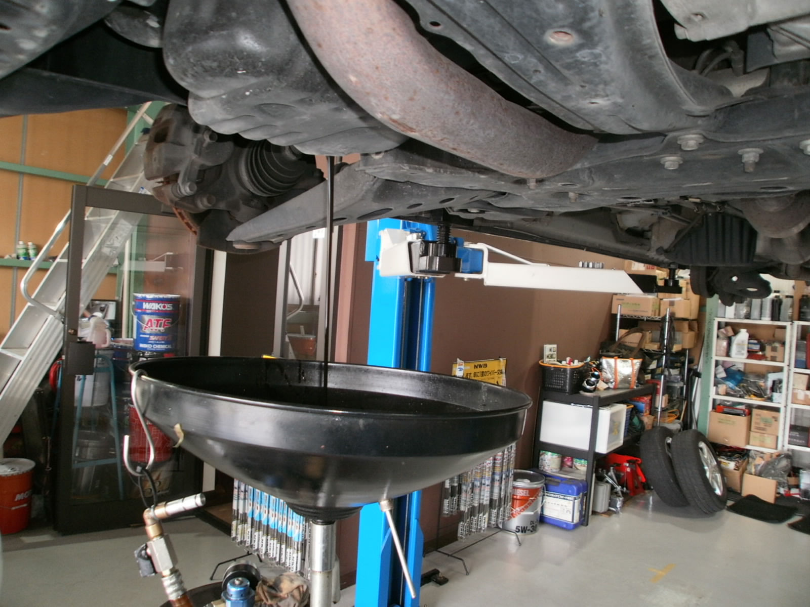 リフトアップし、各箇所点検していきます。ただいま点検診断中ですので、診断結果お見積併せご連絡を差し上げます。今しばらくお待ちくださいませ!