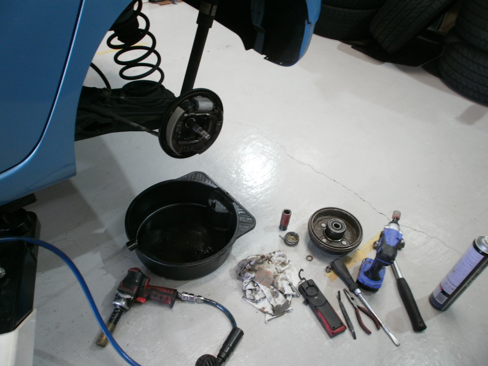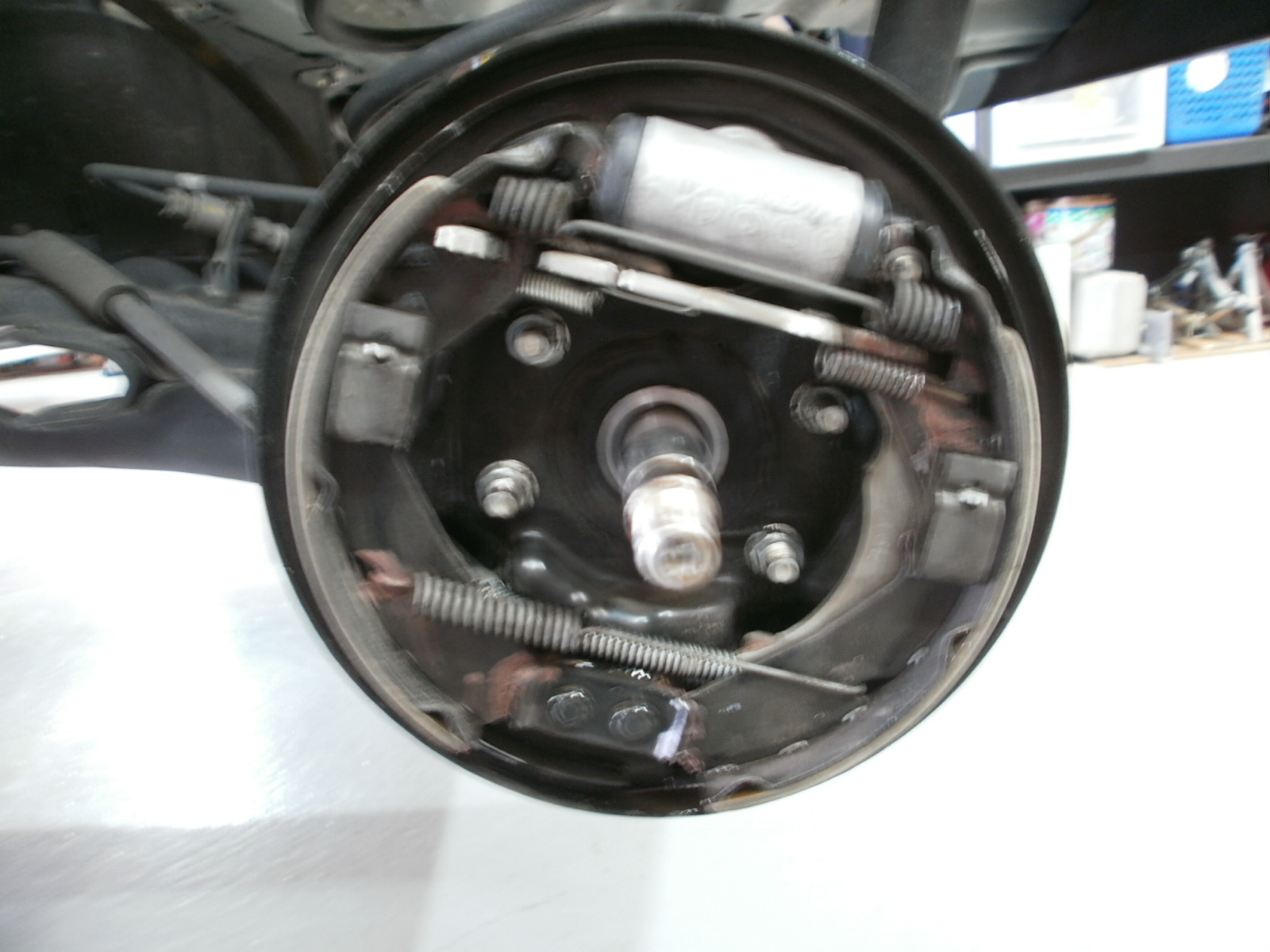 リア左側のブレーキが少しききすぎておりましたので、ドラムシューの面取り作業にてブレーキ調整させていただきました。