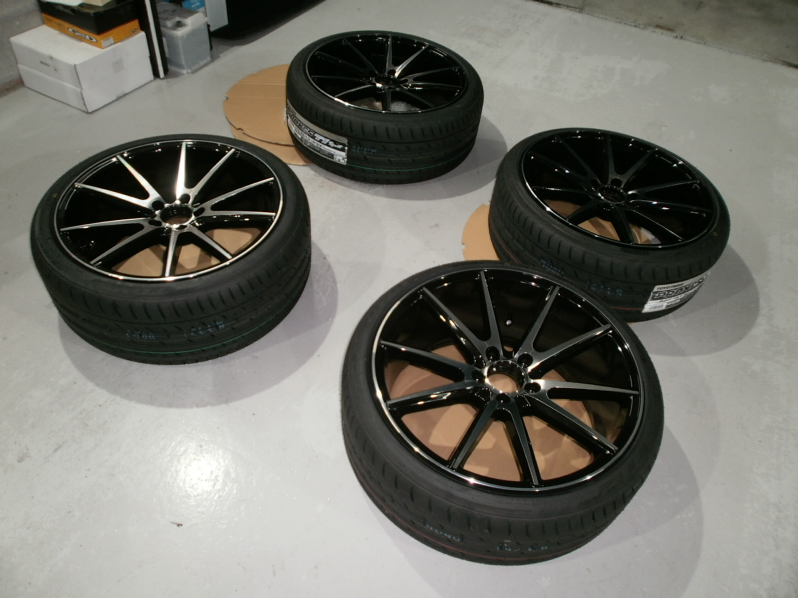 冬用タイヤから夏用タイヤへ交換させていただきました。夏用タイヤは、ホイールもタイヤも新品~ボディー同色のブラックカラーのホイールはかなり引き締まりますね!純正感を損なわずイケてます!!!