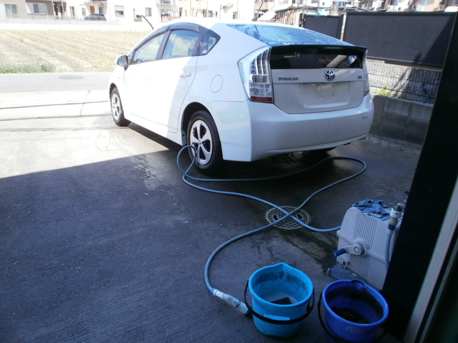 まずは、洗車からボディーに付着している鉄粉除去作業。