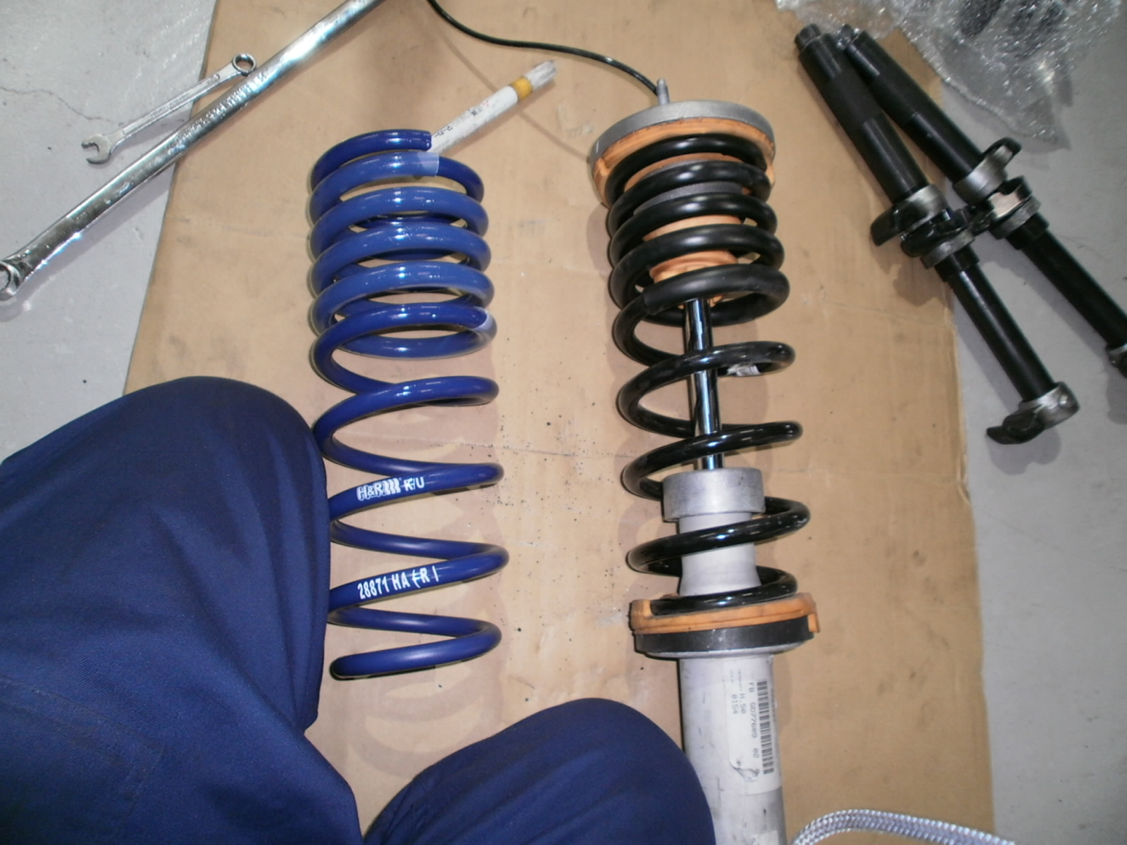 青色スプリングがダウンサス・黒色がノーマルスプリング。約30mmのダウン量です。