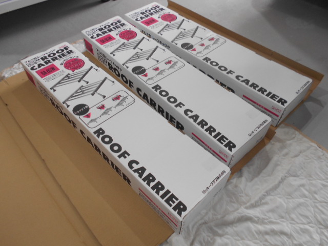 取付のルーフキャリアは用途別にルーフキャリアをつなぎ合わせることができる優れもの。アルミ製でものもしっかりとしています!今回、3つを繋いで取付させていただきました。