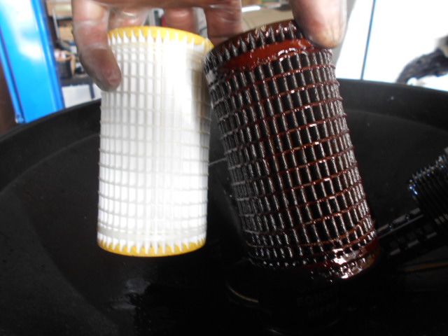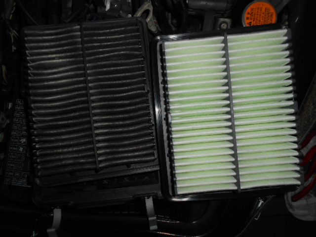 その他、エアコンフィルターも汚れがひどかったので交換です。新品との比較です。