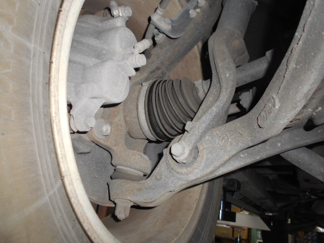 ブロント・リアブレーキパッド交換・ベルト交換の作業写真です。車検は2年に1回、この機会にしっかりとお車をリフレッシュメンテナンスしてあげましょう(´・ω・`)