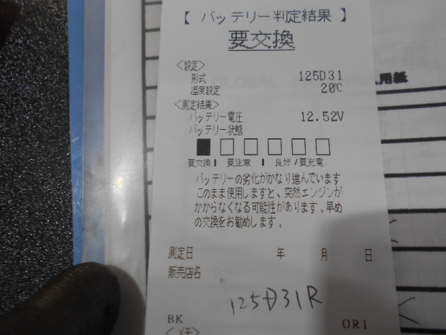 出力点検にて出力不足となっており、新品バッテリーへ交換させていただきました。