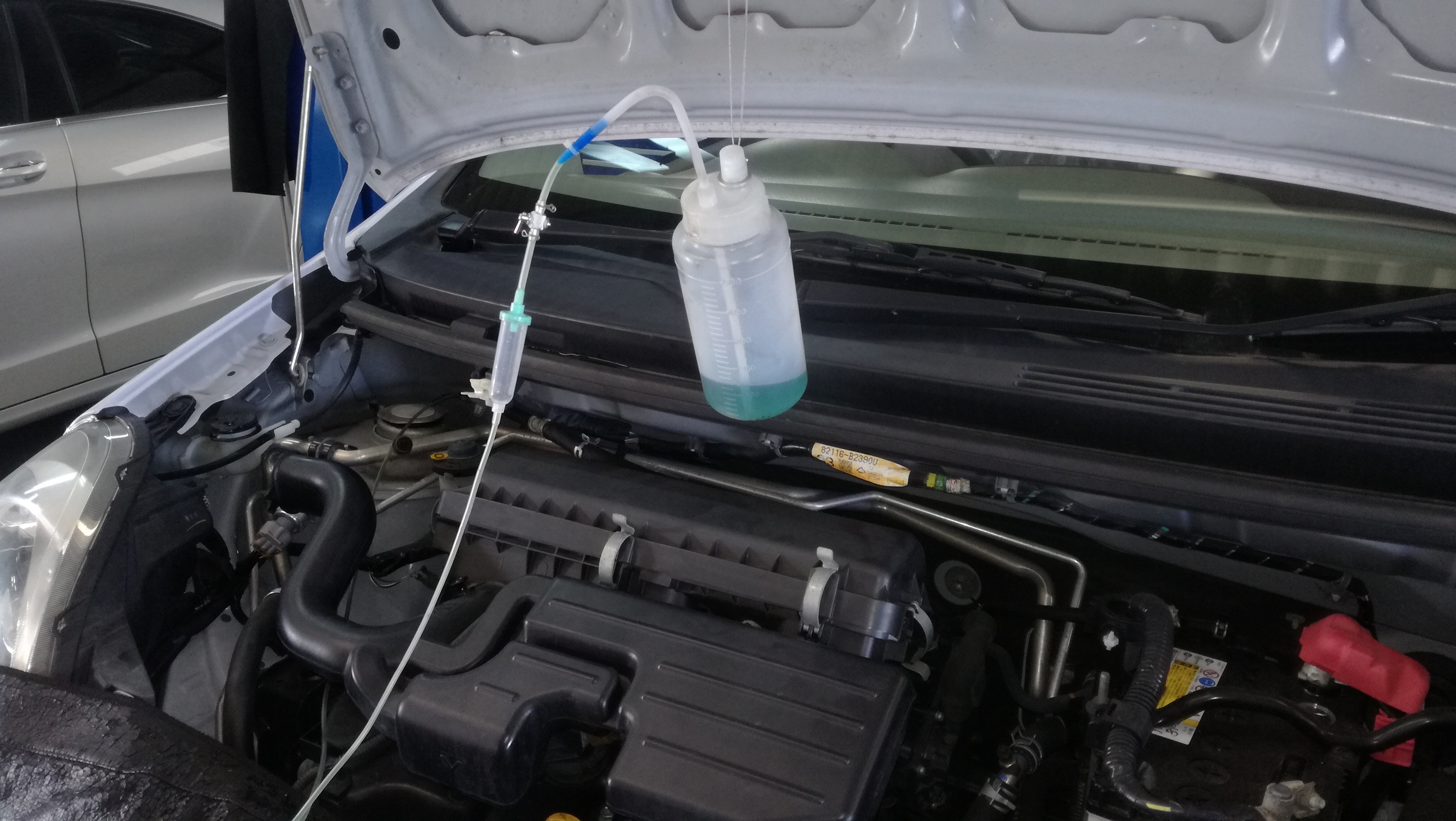 メンテナンス整備として、車検バリューパック・エンジン洗浄剤RECS施工