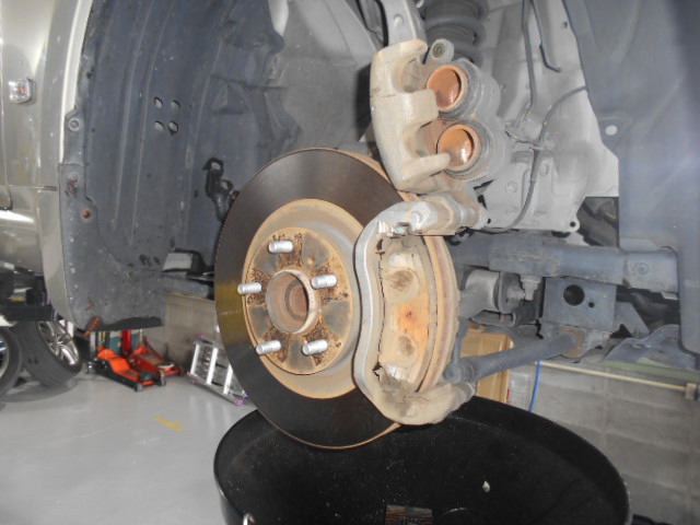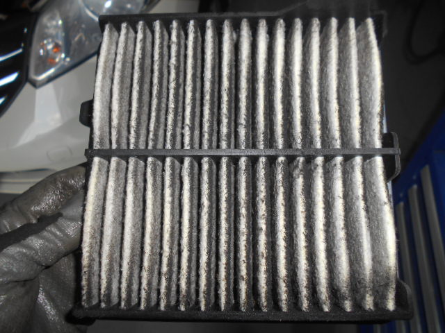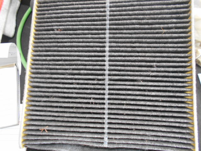 フロントブレーキディスクパッド交換、新旧比べると随分残量が減っております。ブレーキ関係トラブルは特に大きな事故につながります、しっかりとメンテナンスしておきましょう(^^。その他、エアコンフィルターやエアーエレメントなども汚れがひどいので交換させていただきました。常に綺麗な空気を!