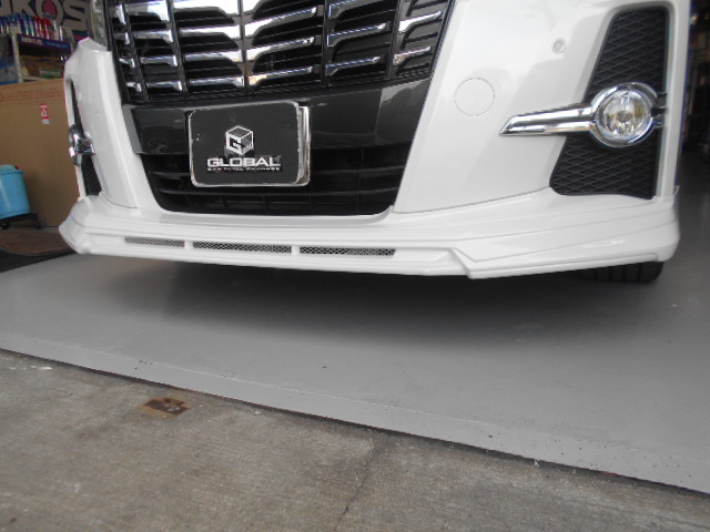 まずはフロントリップスポイラーの取付。前から見ると随分とイメージが変わります!