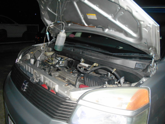 GLOBAL好評、エンジン急速洗浄 RECS(レックス)施工です。点滴のようなものでエンジンに液体を。まさにお車の点滴です(^^)/