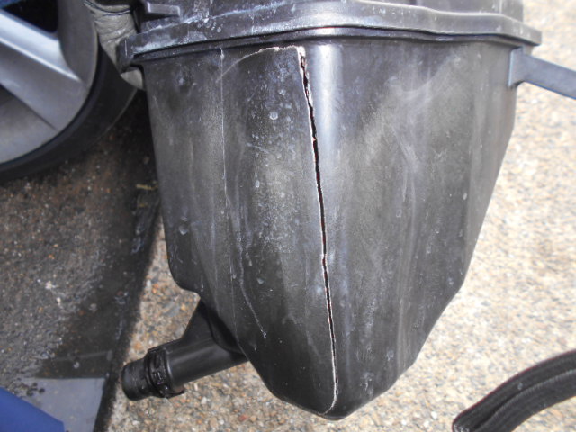 リザーブタンクにクラックが入っており、水漏れがしておりました。新品部品へ交換し、エアー抜きなどもして完了です。