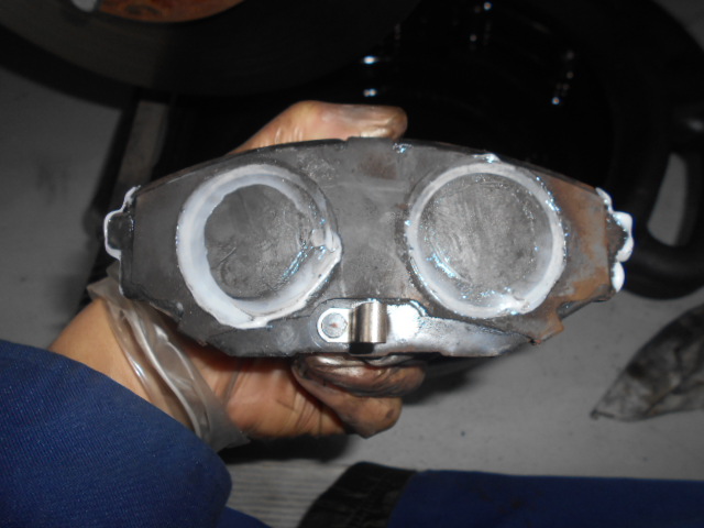 ブレーキ鳴きの為、フロントブレーキパッドの面取り。