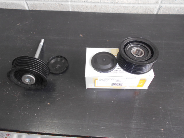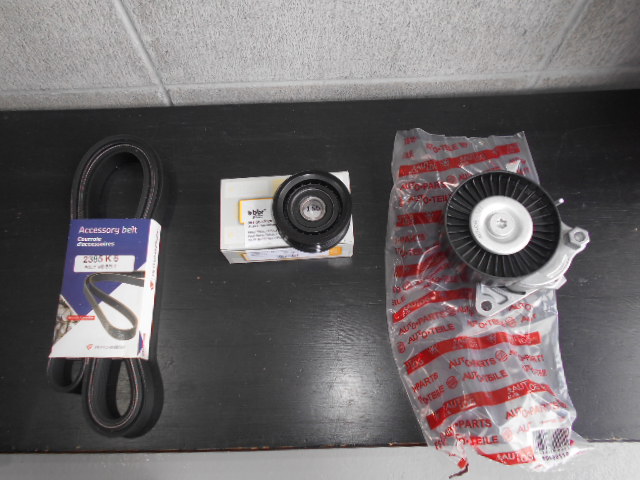 部品をピックアップし、手配。部品入荷し、本日作業いたしました。ベルト1本、アイドルプーリー3つを交換させていただき、エンジンからの異音もなく快調です。最終確認し、作業完了です。 N様 ご入庫ありがとうございました!