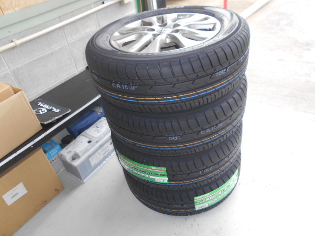 おっと、フロントタイヤの2本がスリップサインが出ております。これは非常に危険ですので、速やかにタイヤのご注文をし、はめかえバランス調整をさせていただきました