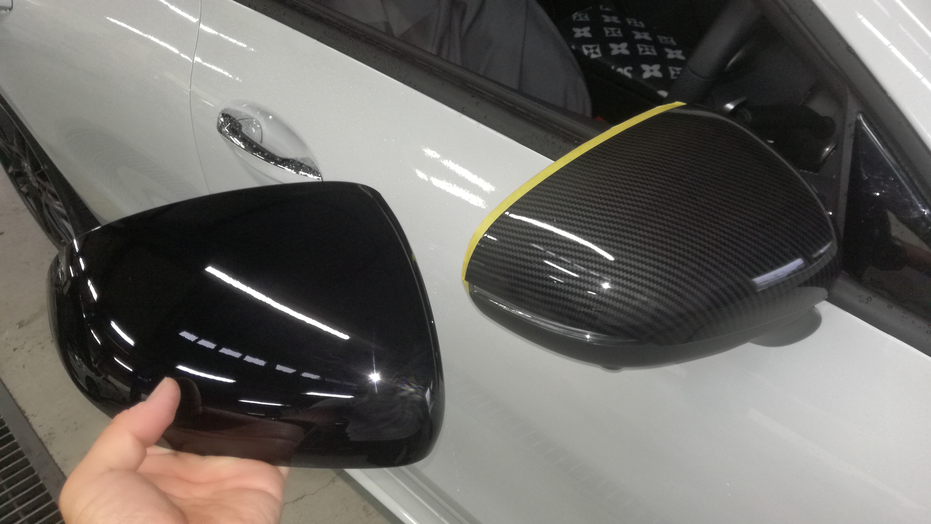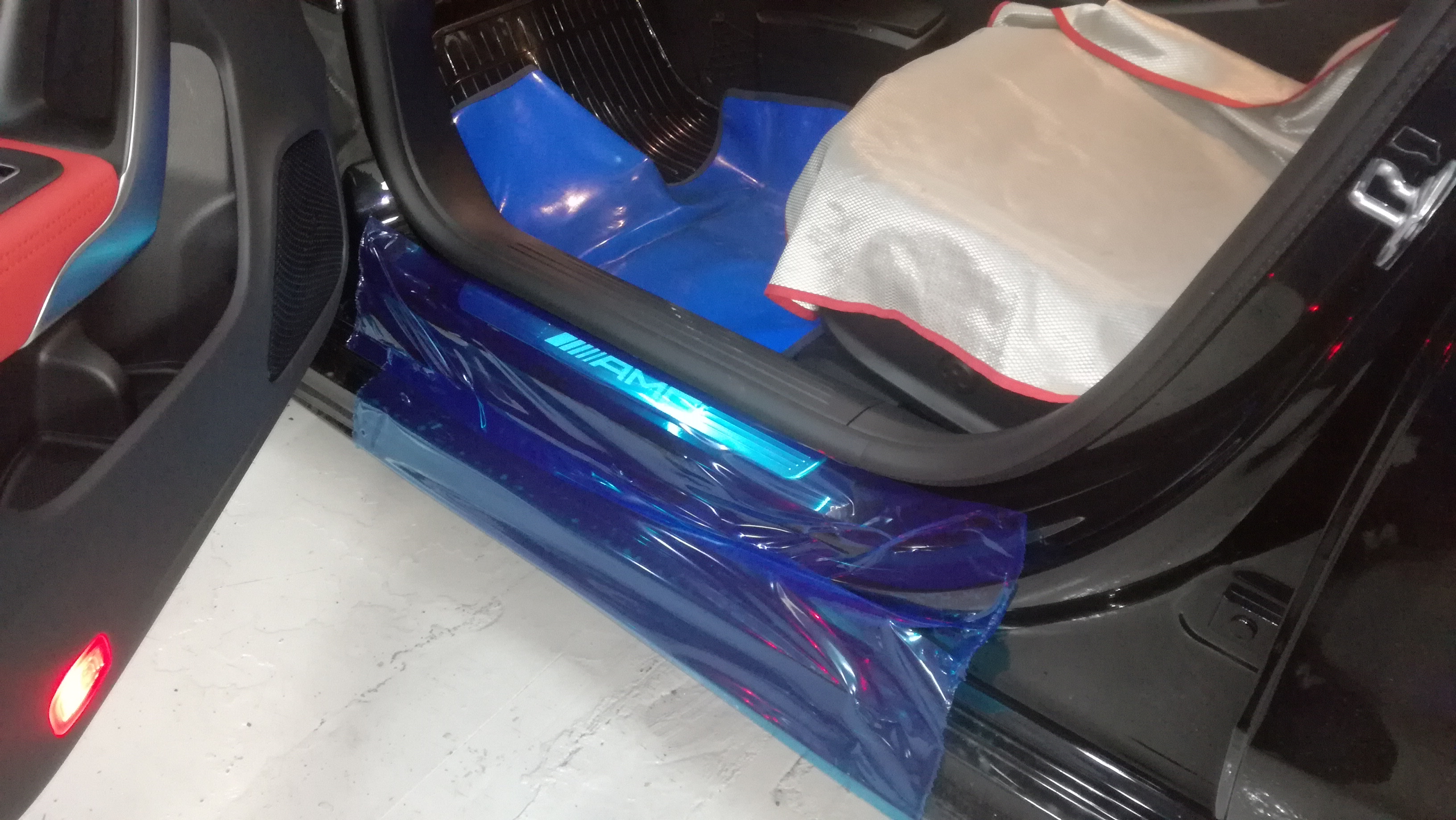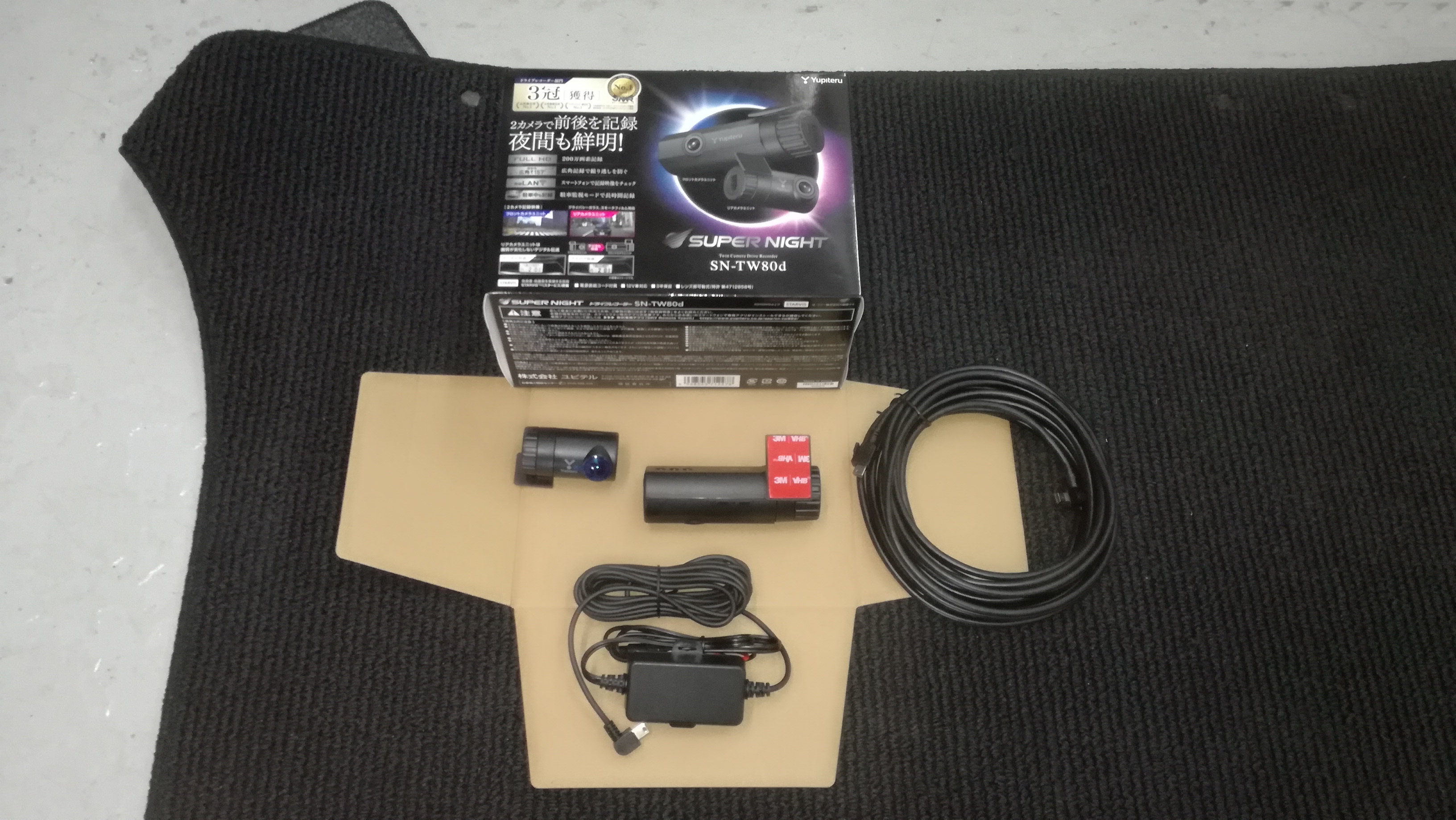 ユピテルの前後ドライブレコーダーセットの取付です。作業するにあたって傷がつかないよう当たり前ですが、養生もしっかりとおこなっております。