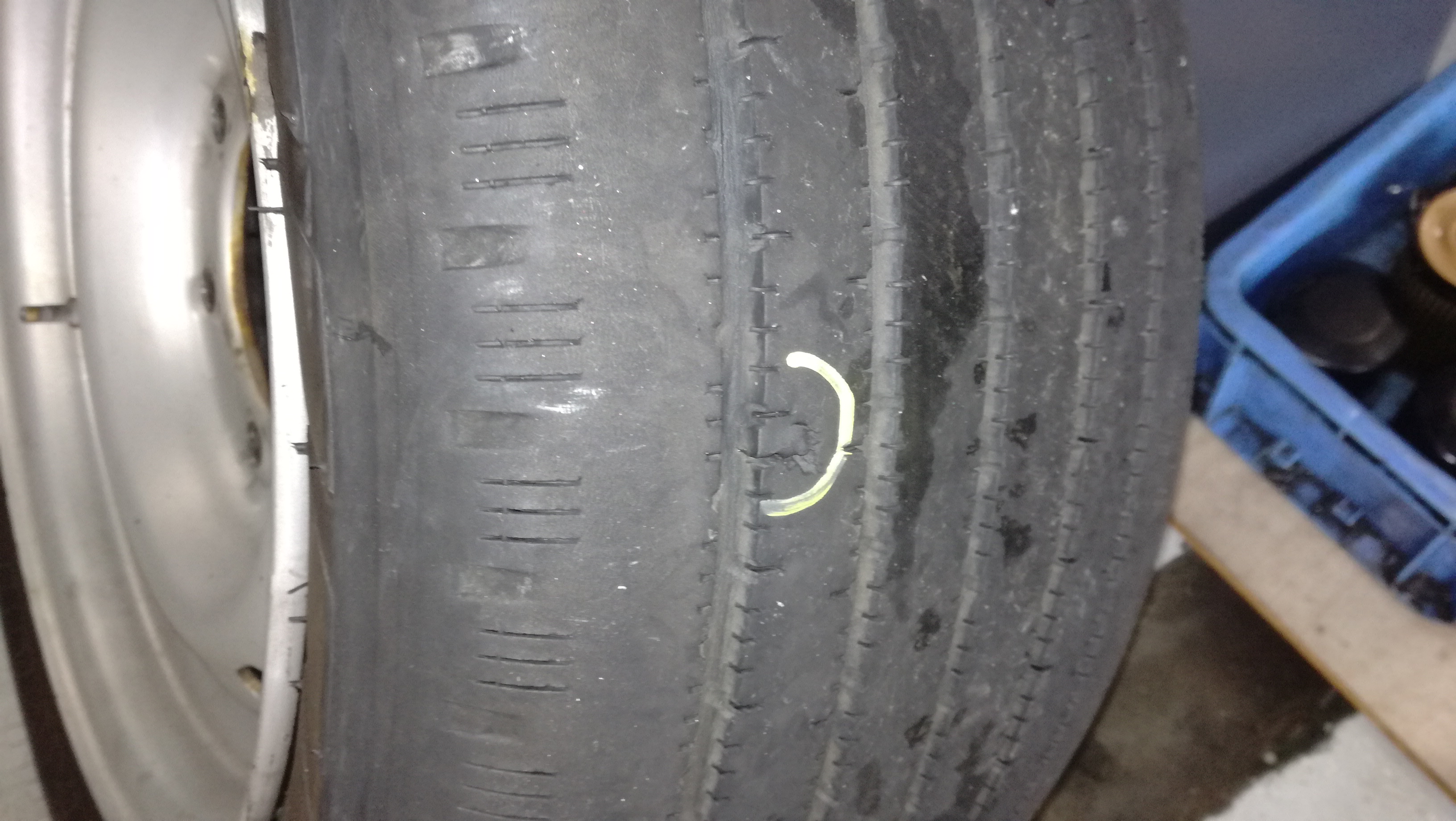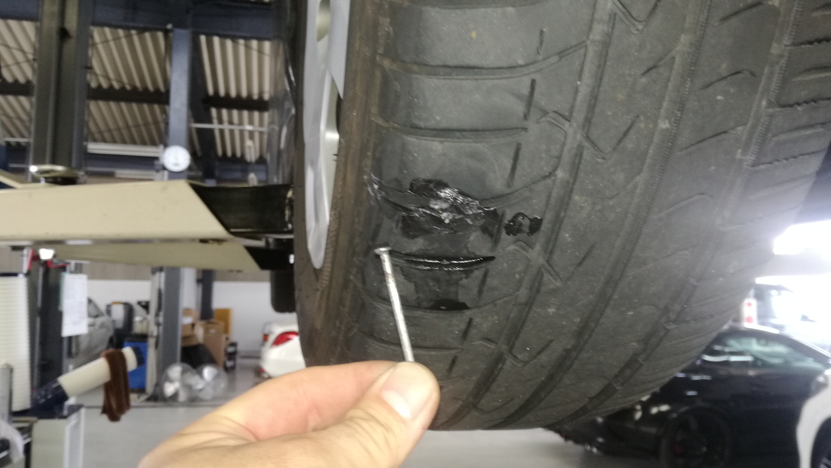 エンジンオイル・オイルフィルター交換、セーフティ点検実施にてタイヤに釘が刺さっているのを発見!パンク修理させていただきました。