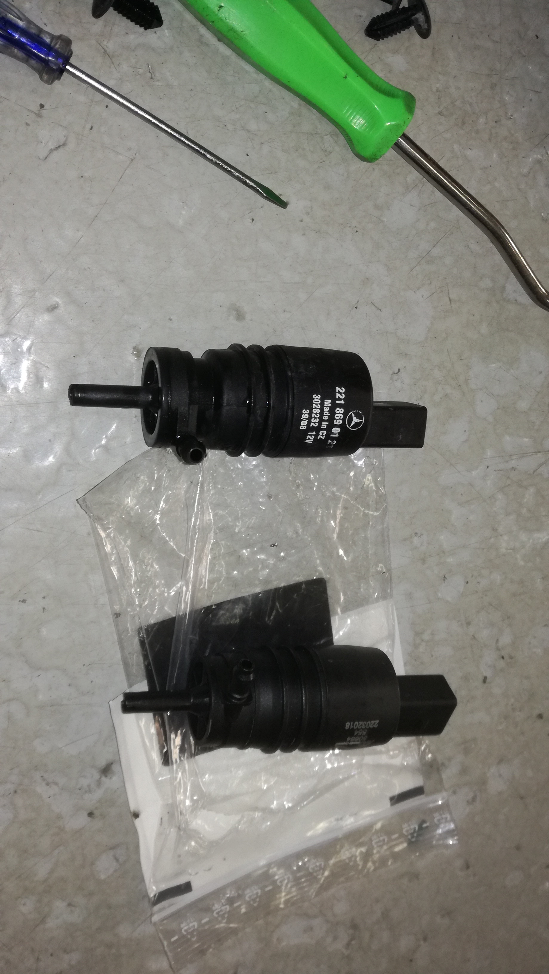 昨日オーダーさせていただいていたウォッシャーポンプの交換