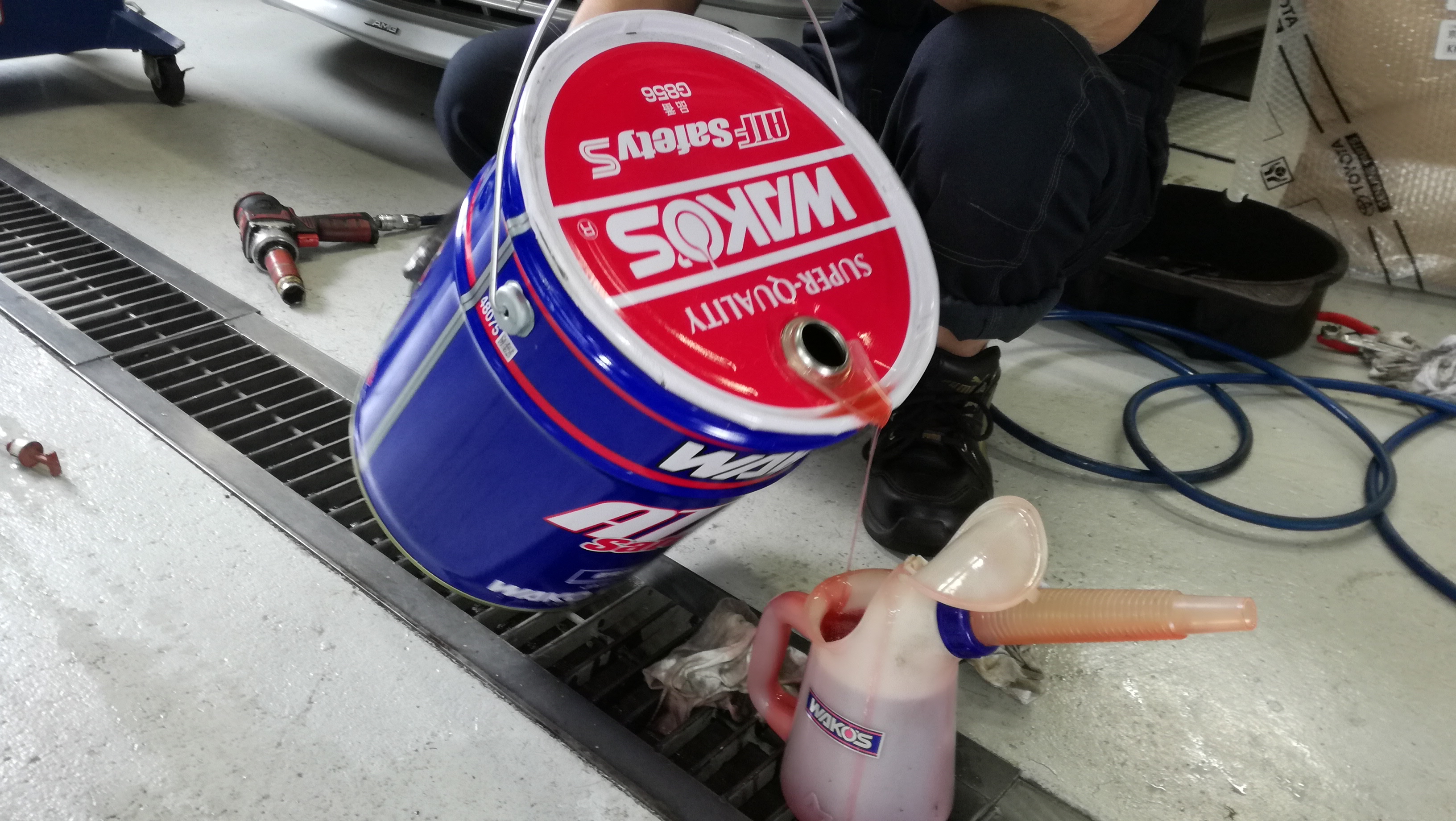 オーナー様ご要望の車高に調整~そして4輪アライメント・エンジンオイル交換等 すすめていきますので今しばらくお待ちくださいませ。