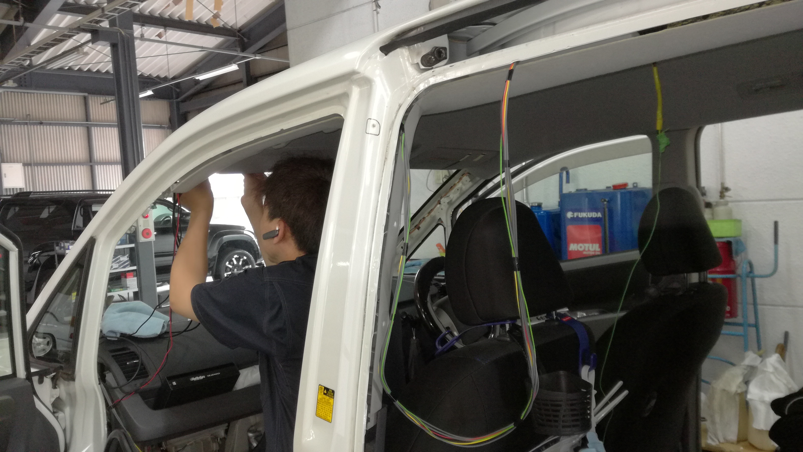 センターコンソールパネル類を取り外してユニット取付、配線等結線