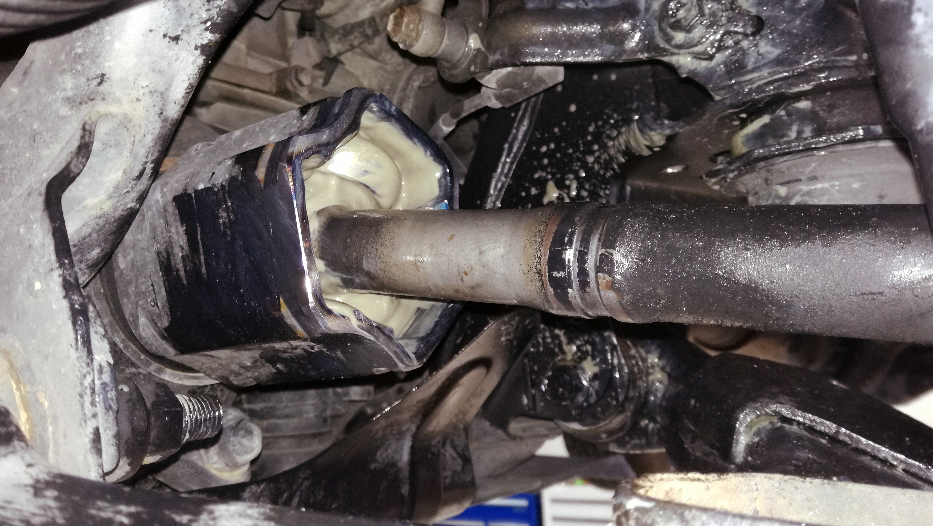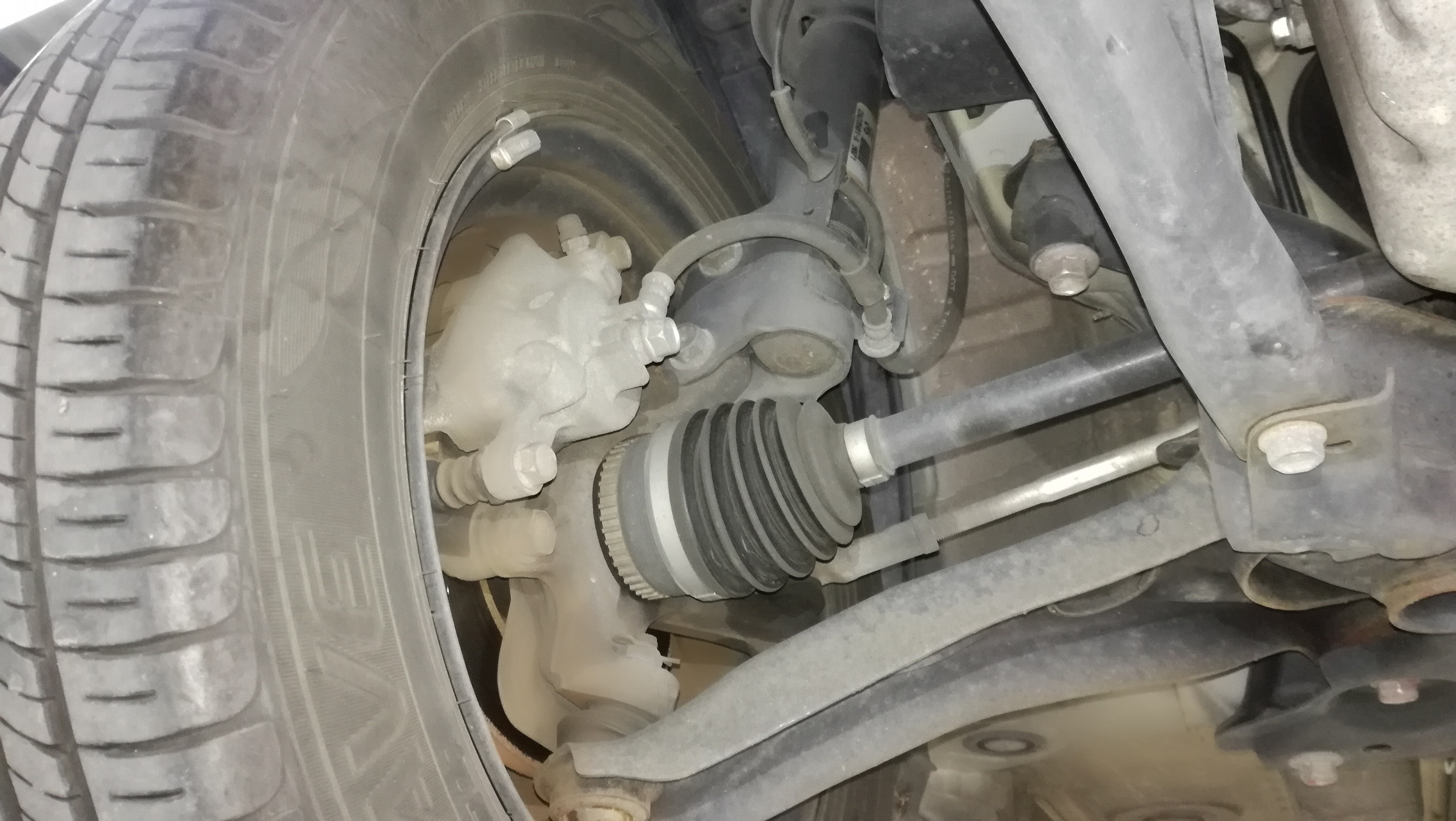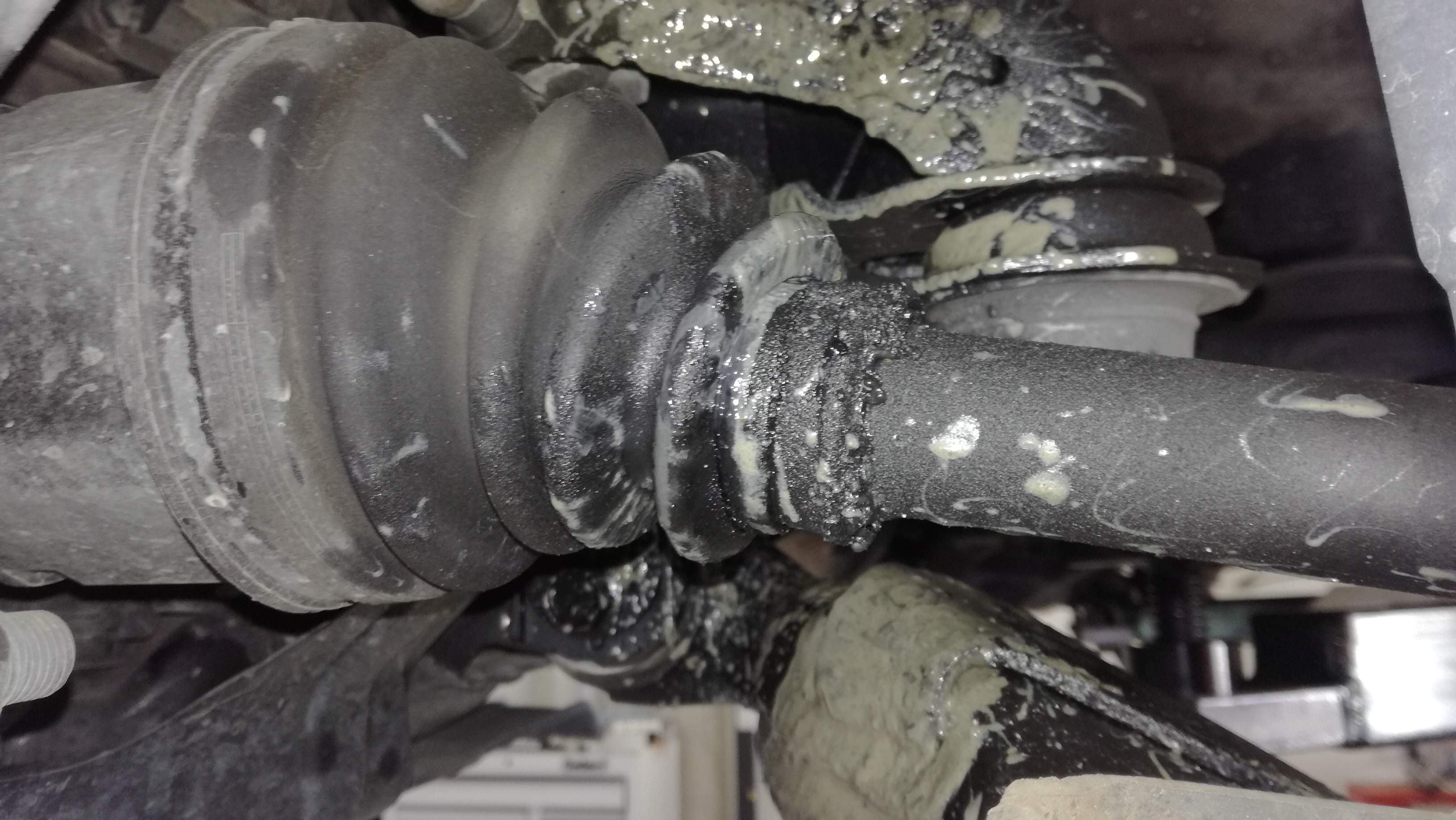 フロント左ドライブシャフトインナーブーツ破れによりグリース漏れしておりましたので交換