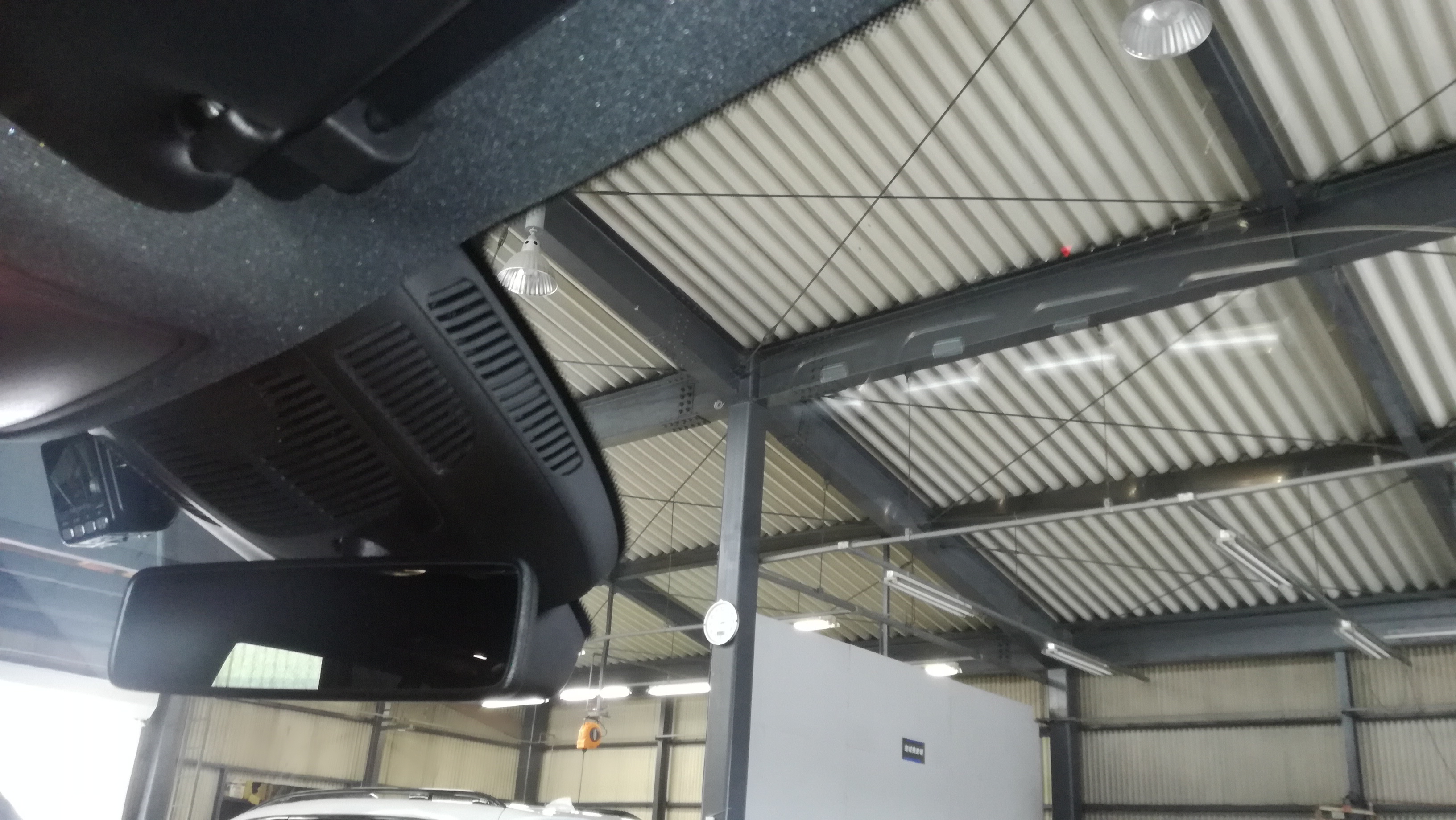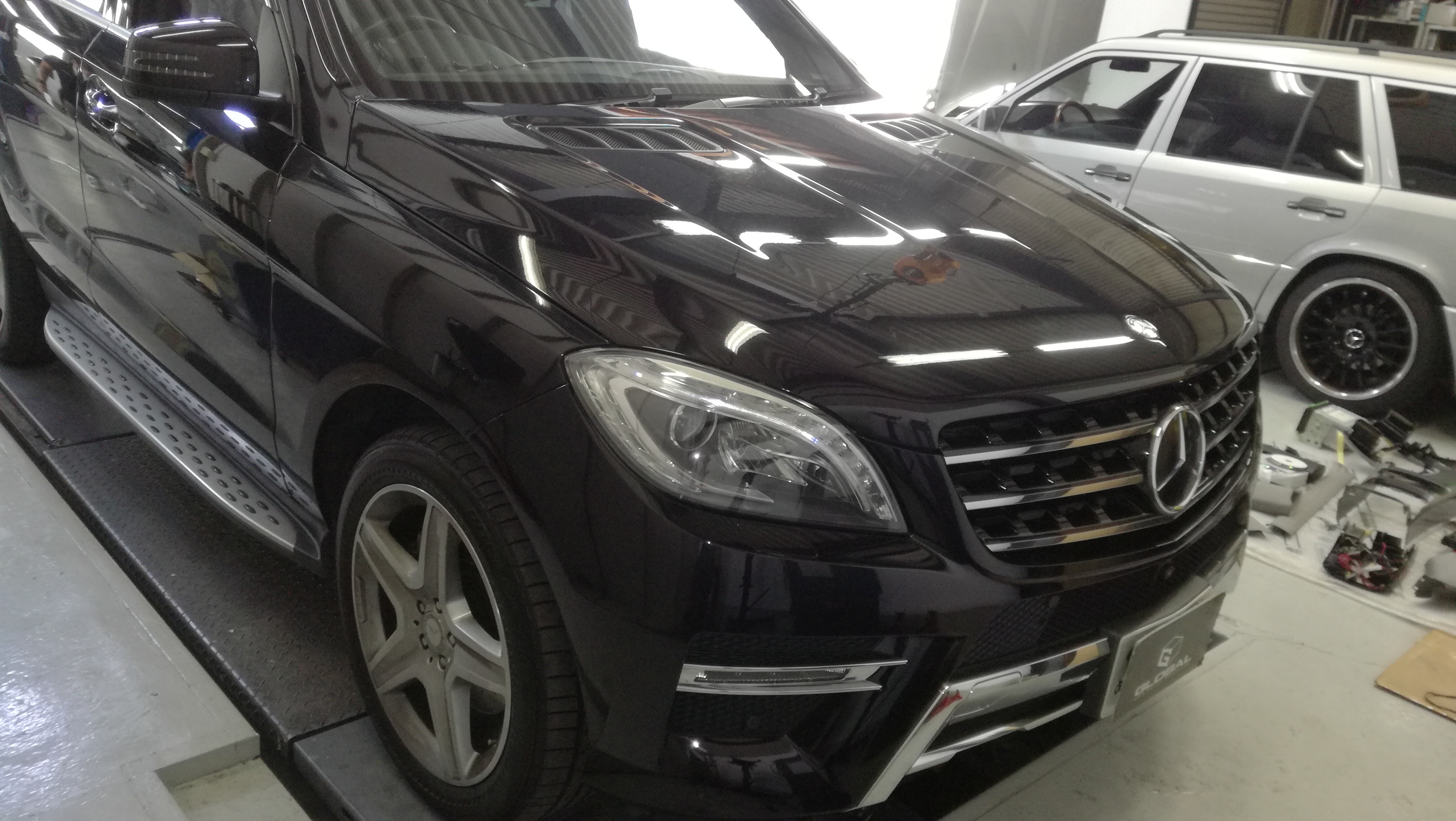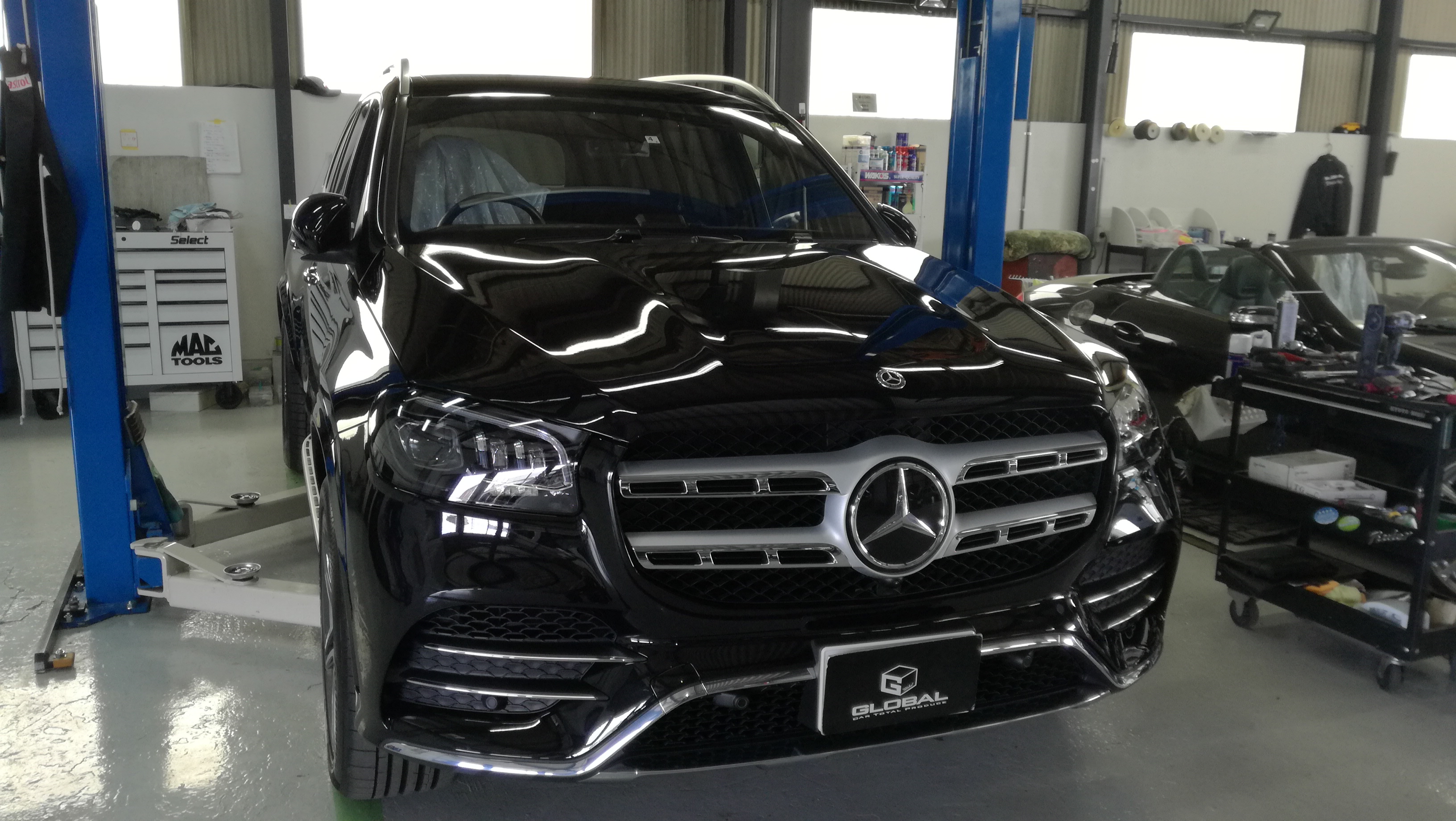 こちらのGLSクラスでは、フロントガラスがGPSなどを受信できないため、GPS・レーダー受光部などはセンター上部の限られた範囲内に取付