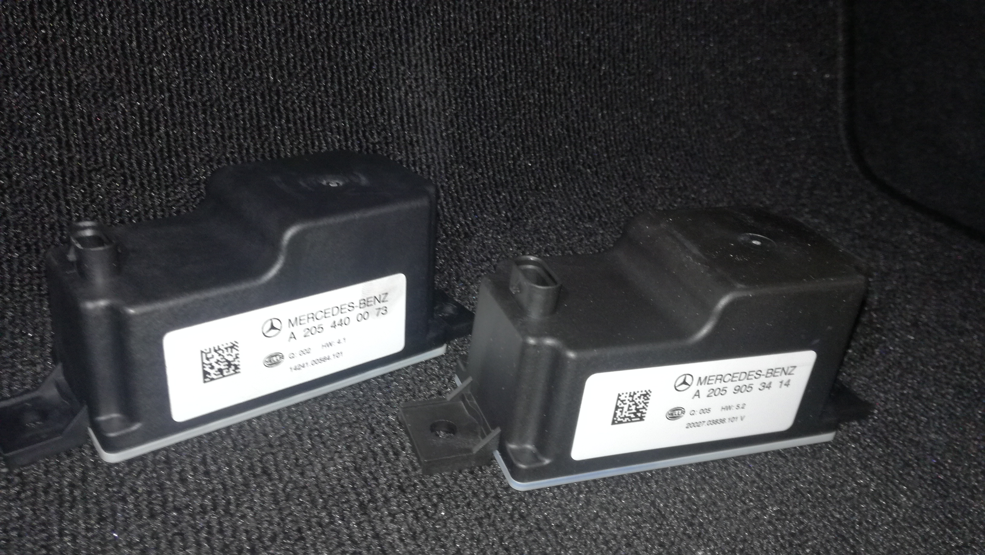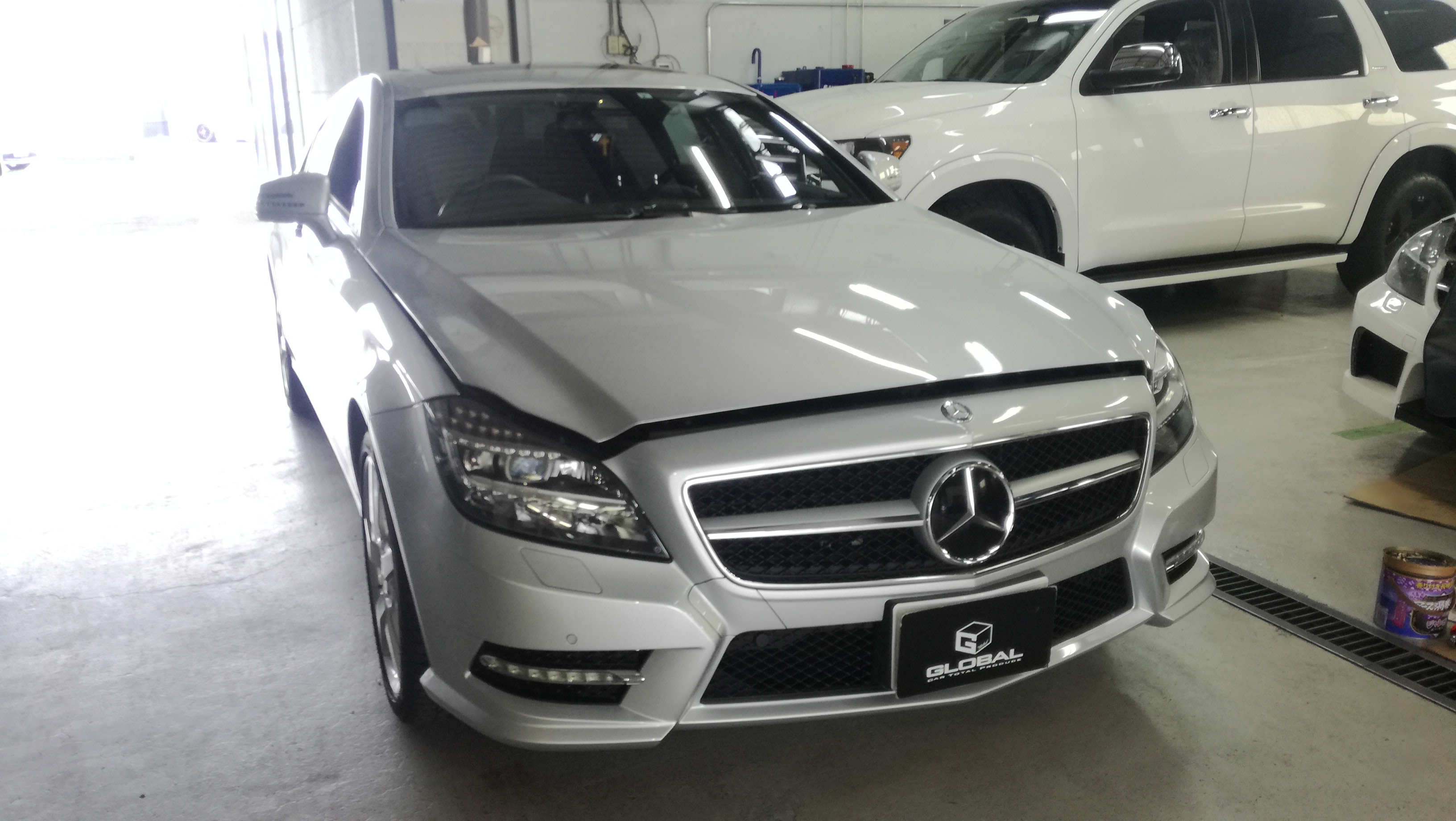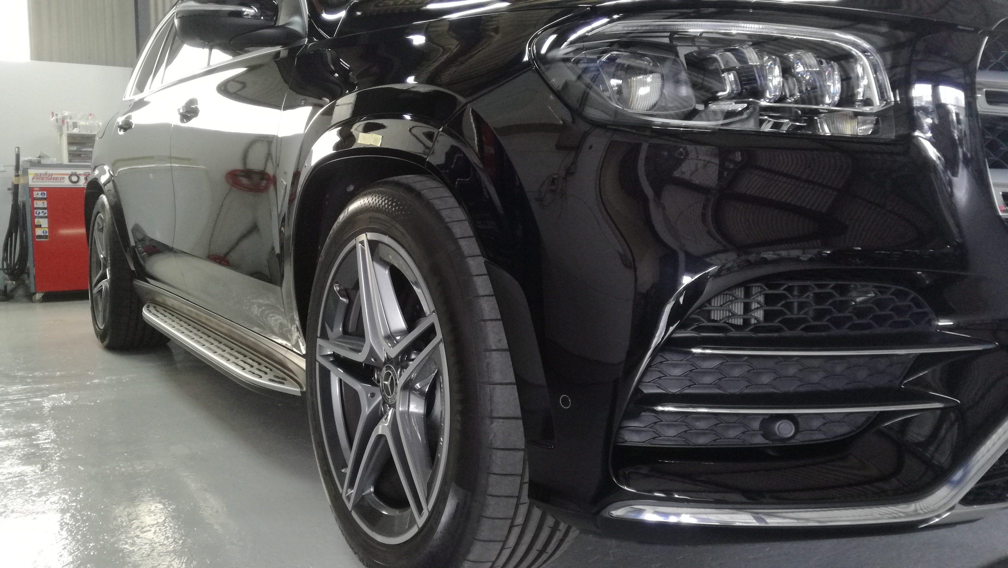 こちらのGLSクラスでは、フロントガラスがGPSなどを受信できないため、GPS・レーダー受光部などはセンター上部の限られた範囲内に取付