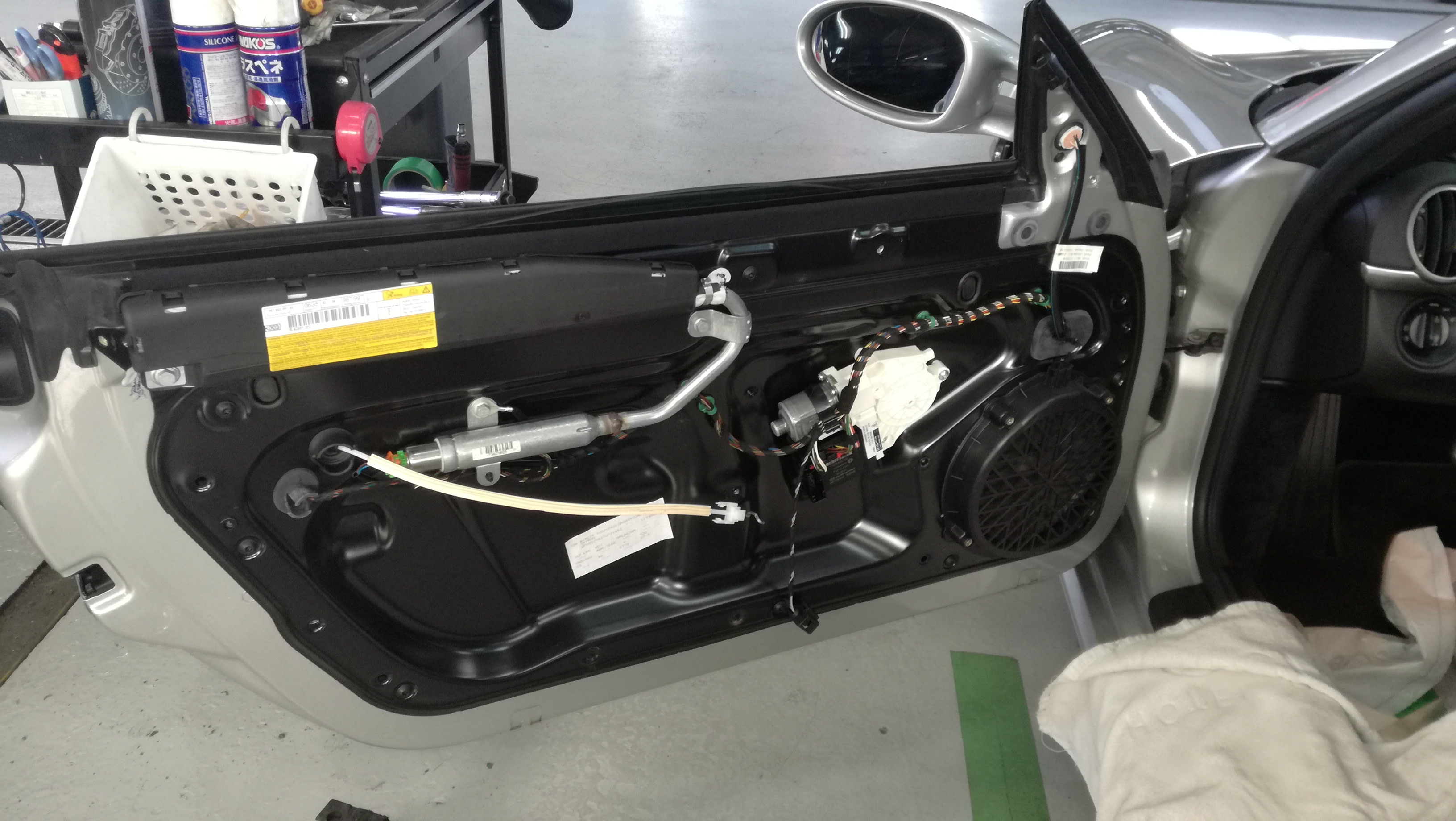 オーナー様ご要望により、スピーカーは運転席側Bピラー内に設置。配線等もパネルでビビり音がしないように処理しております