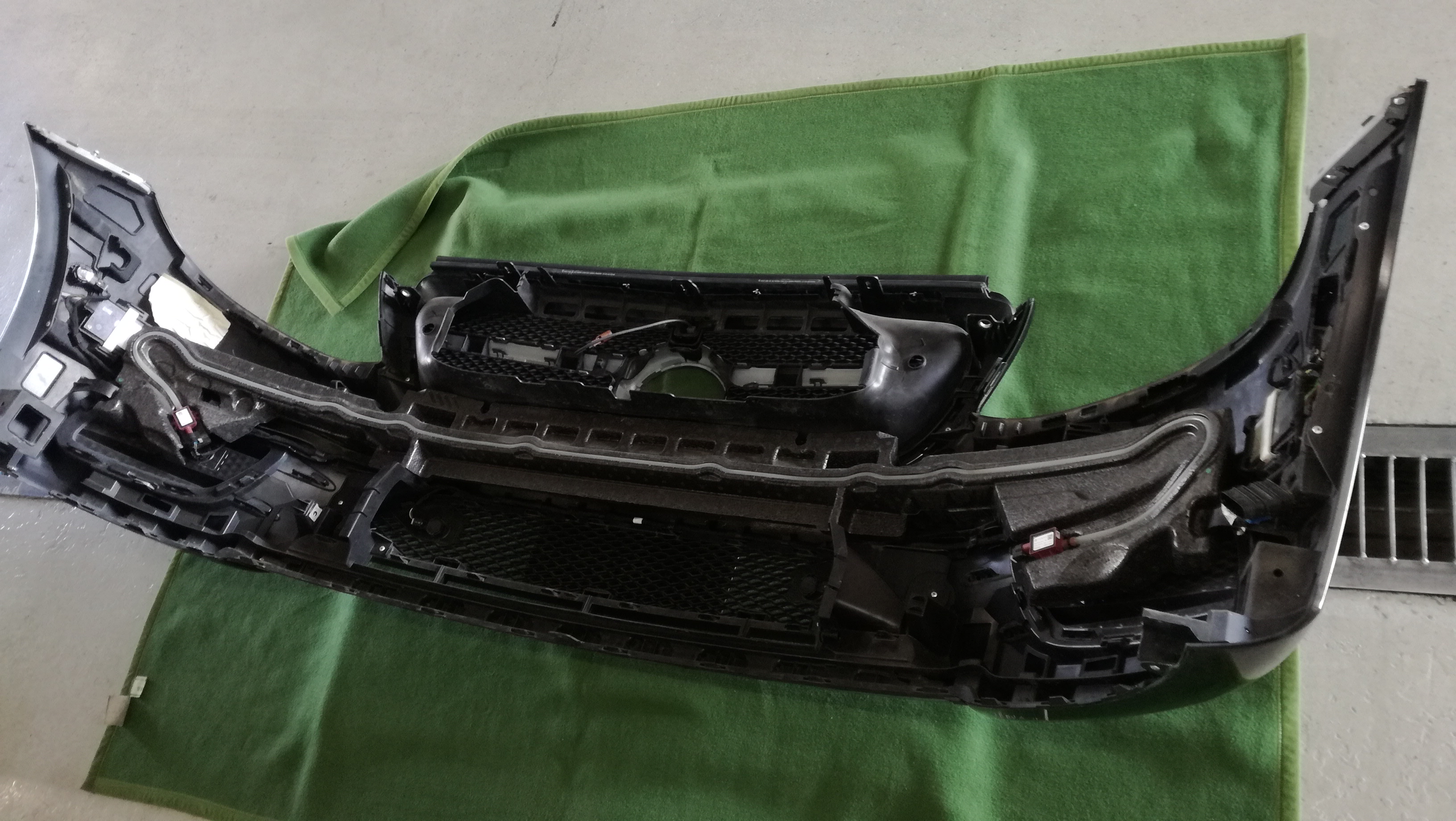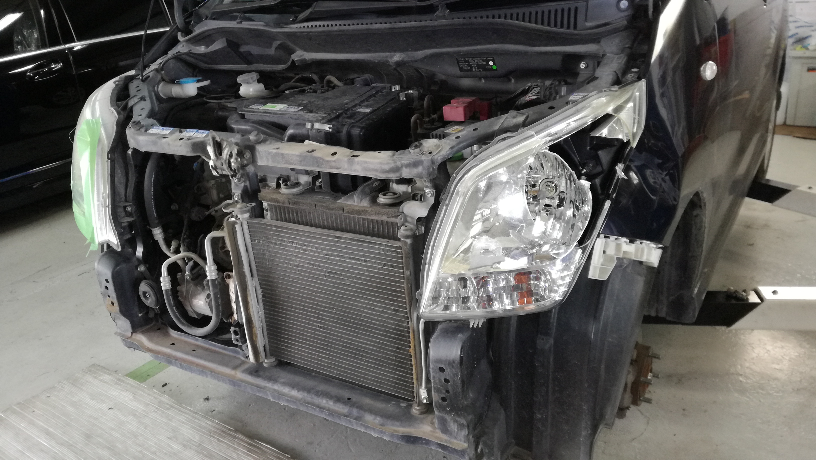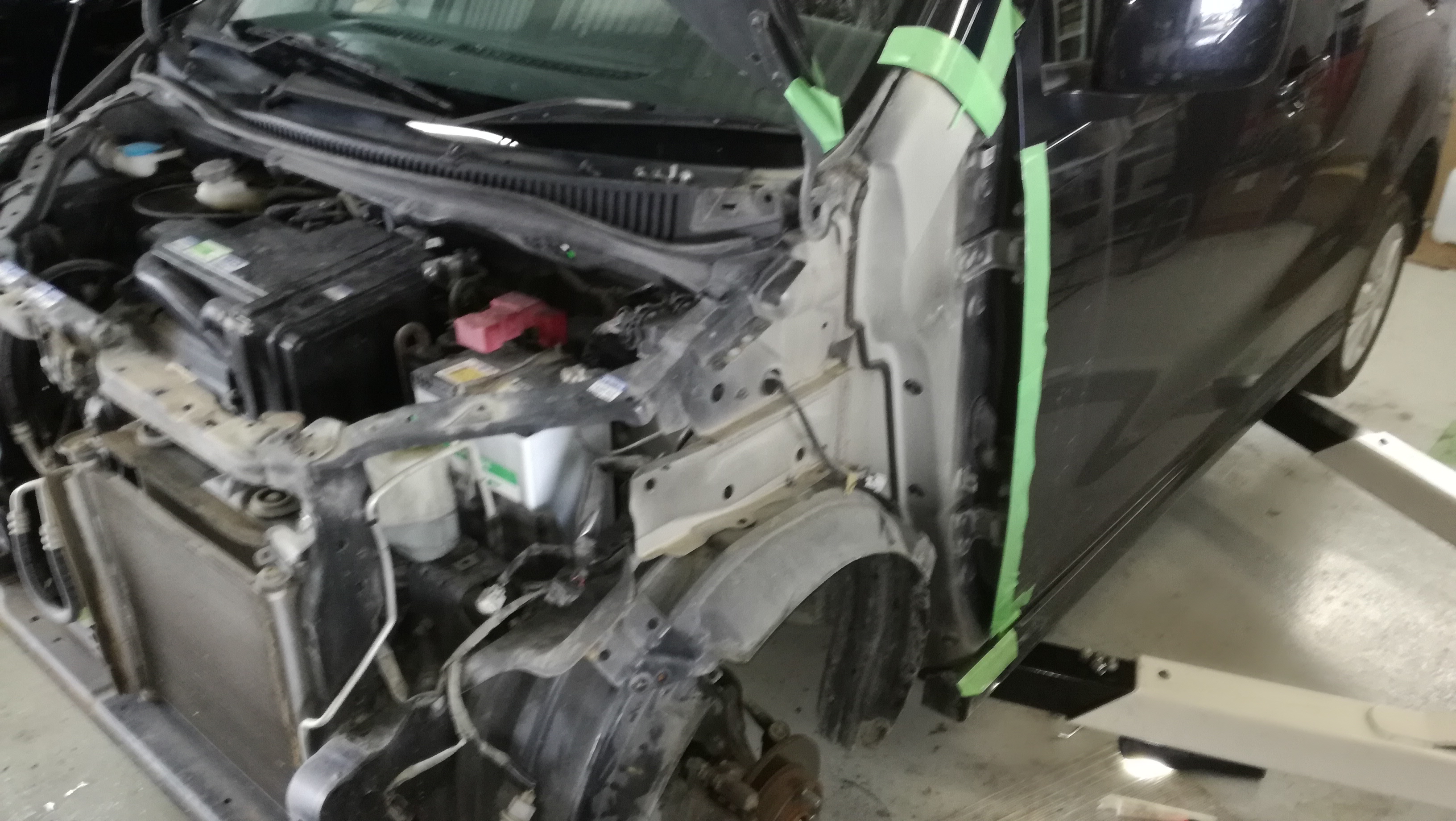 まずはフロントバンパー脱着、数々こなしてきたメカニックY氏が段取りよく丁寧に作業~
