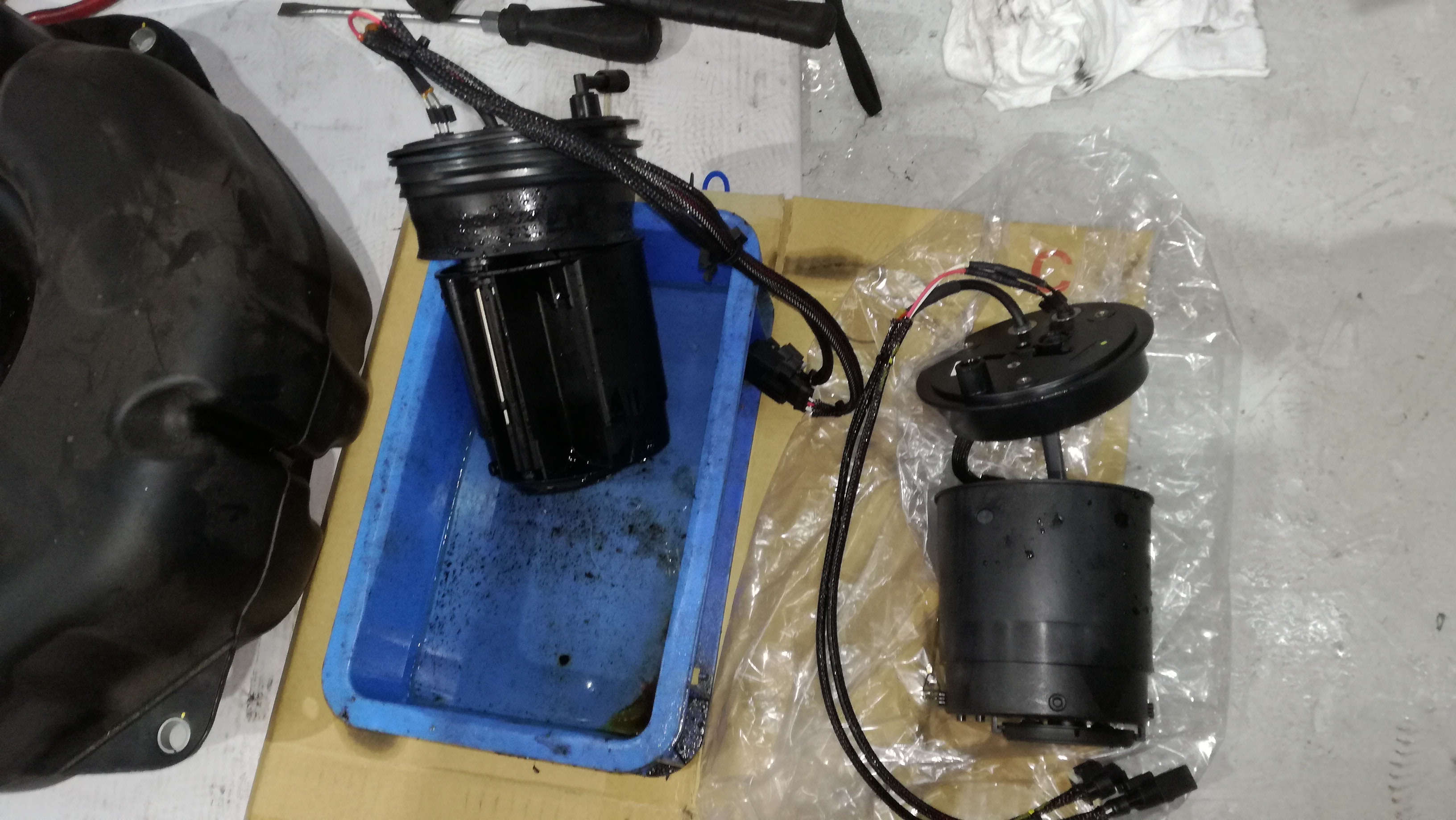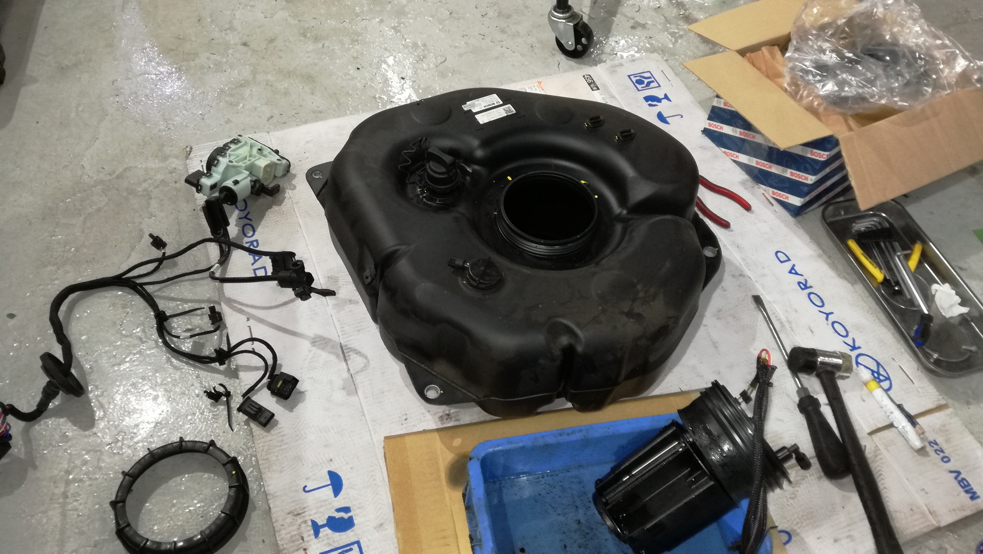フューエルタンクのワイヤーケーブル破損により、新品部品に交換です。