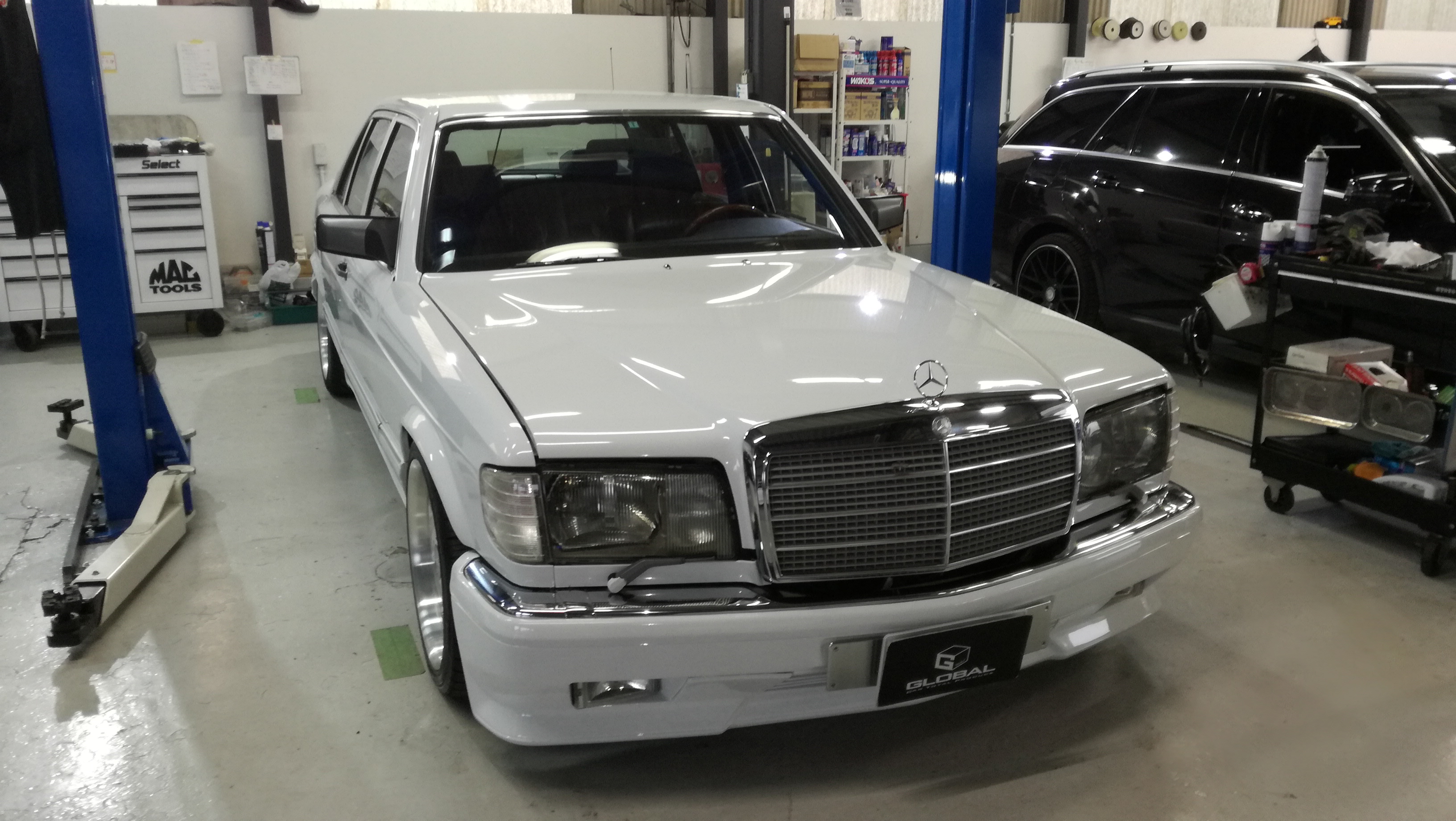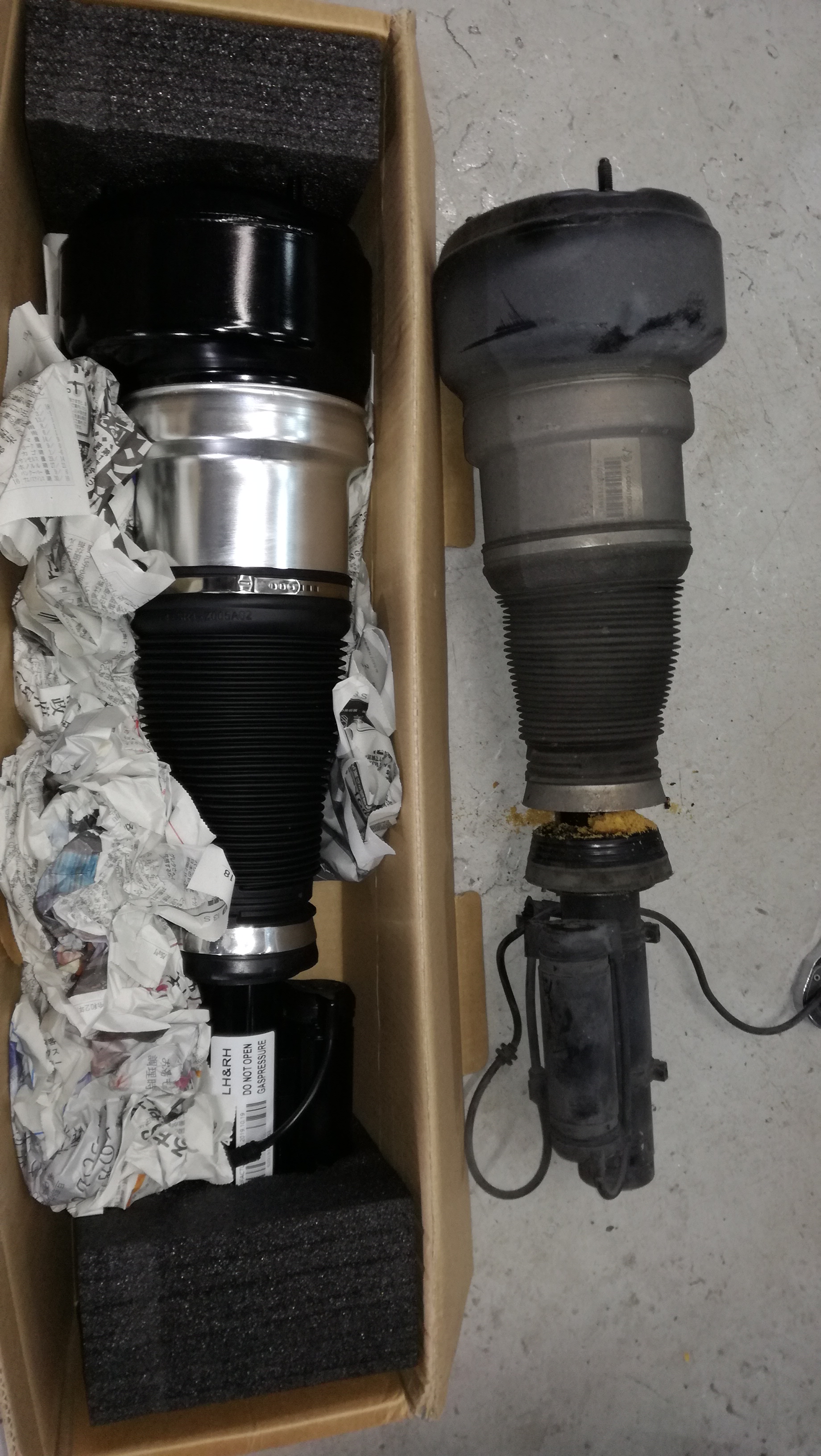 T様 W221 右フロントのエアサス交換作業すすめております。