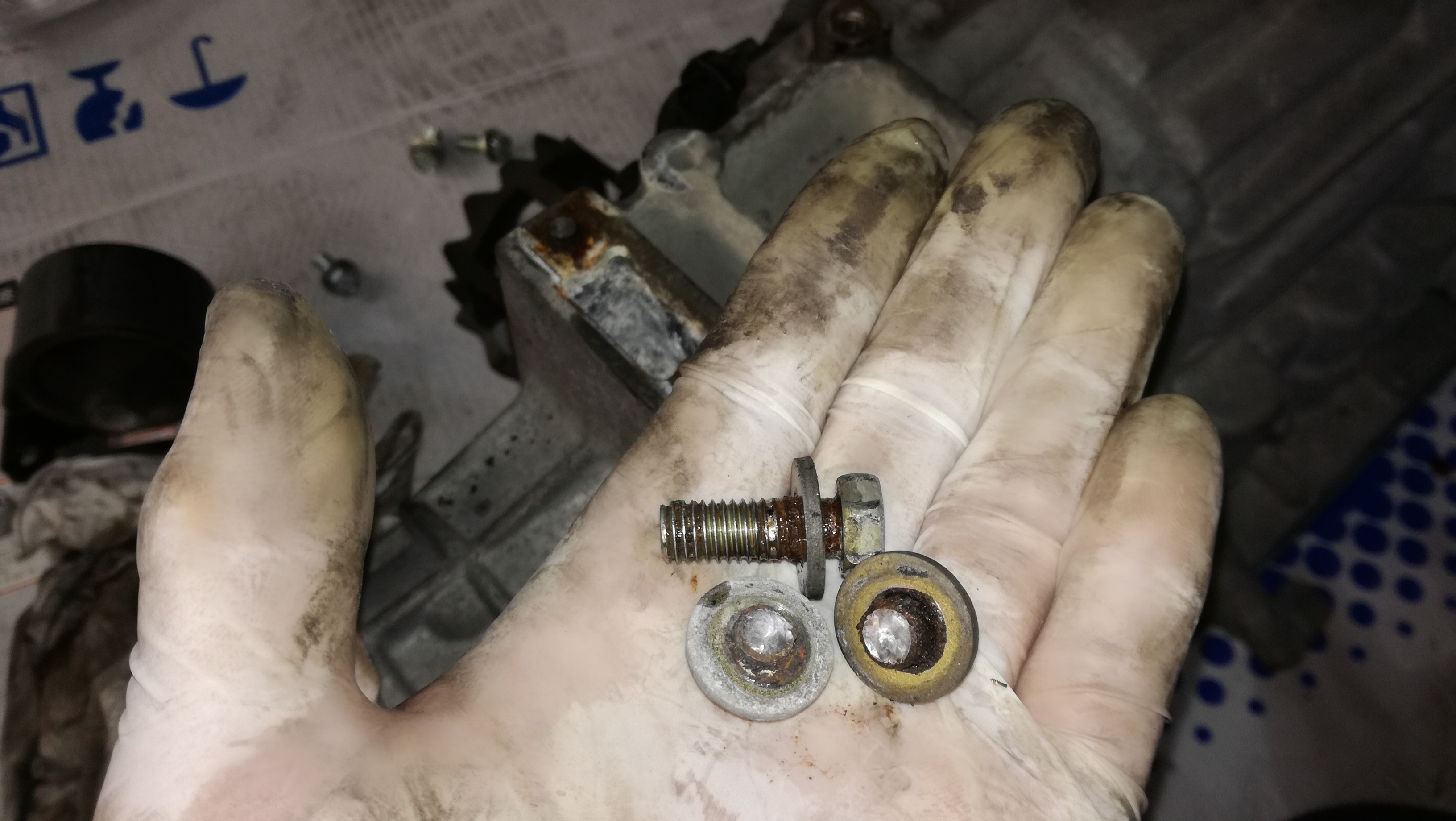 マウントと止めているボルト4点のボルト1箇所が、、、ミッション側でボルトの頭飛びしている、、。どうにか救出せねば。