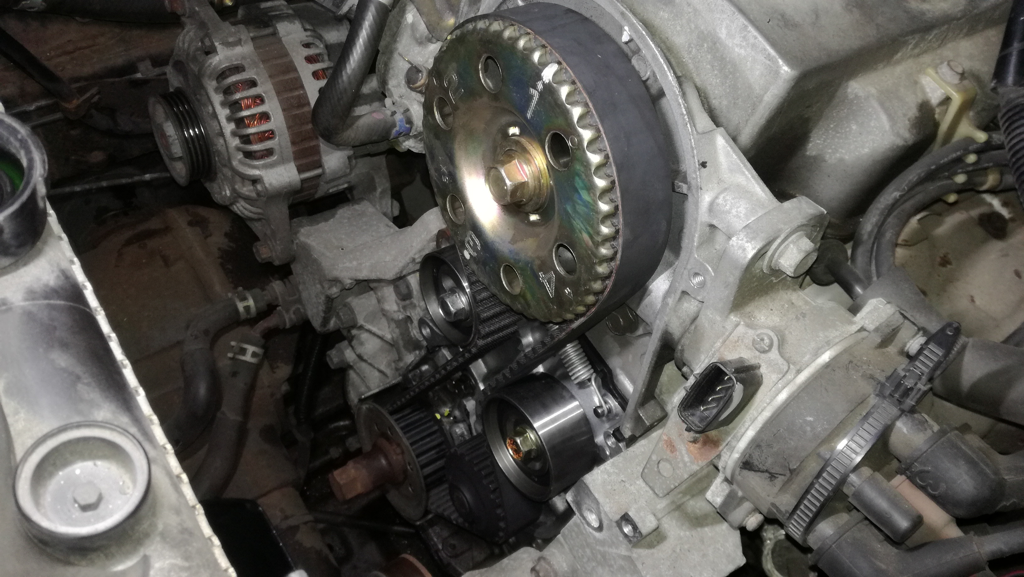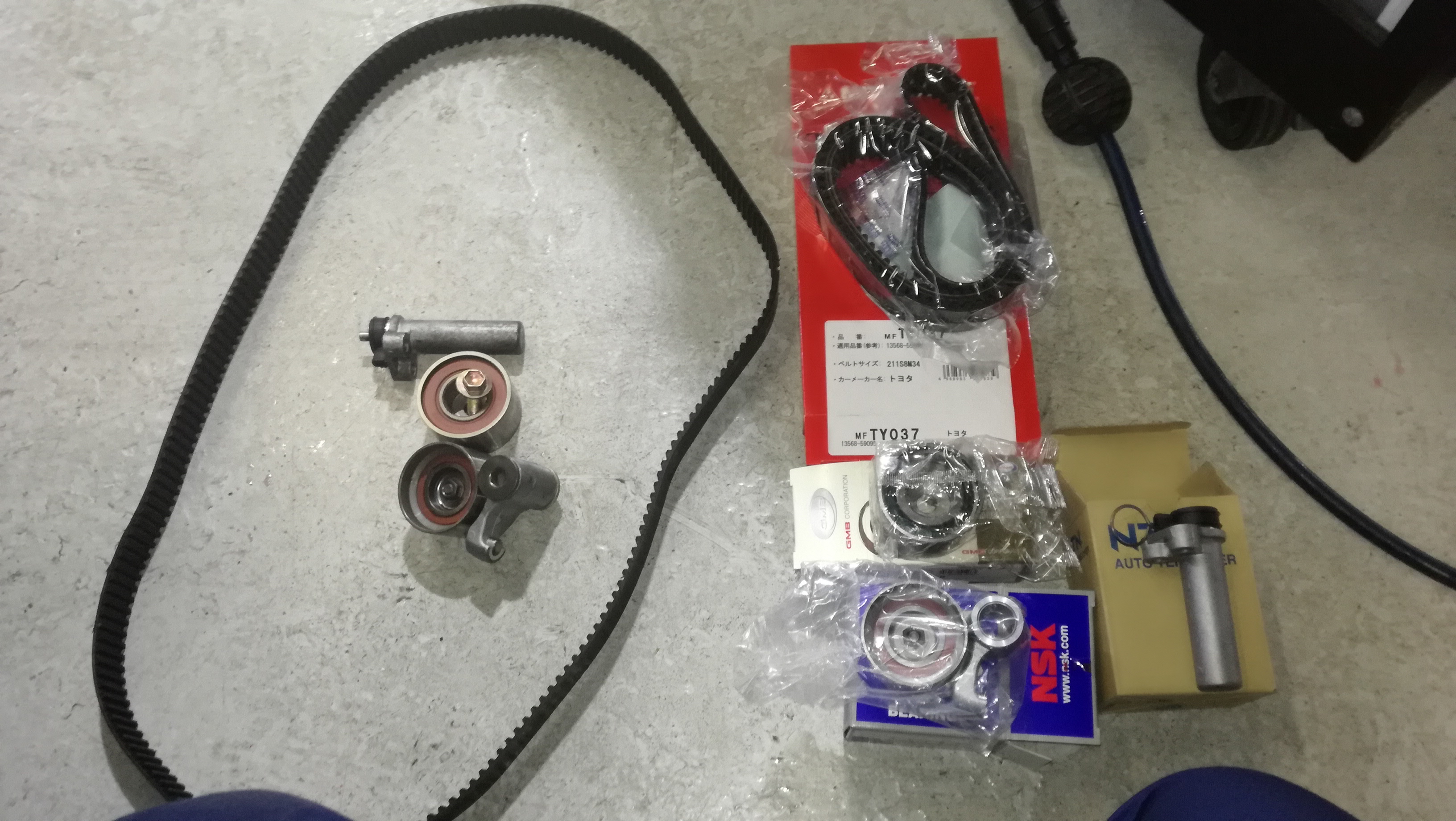 タイミングベルト交換にあわせて、テンショナーやウォーターポンプ等も交換です。
