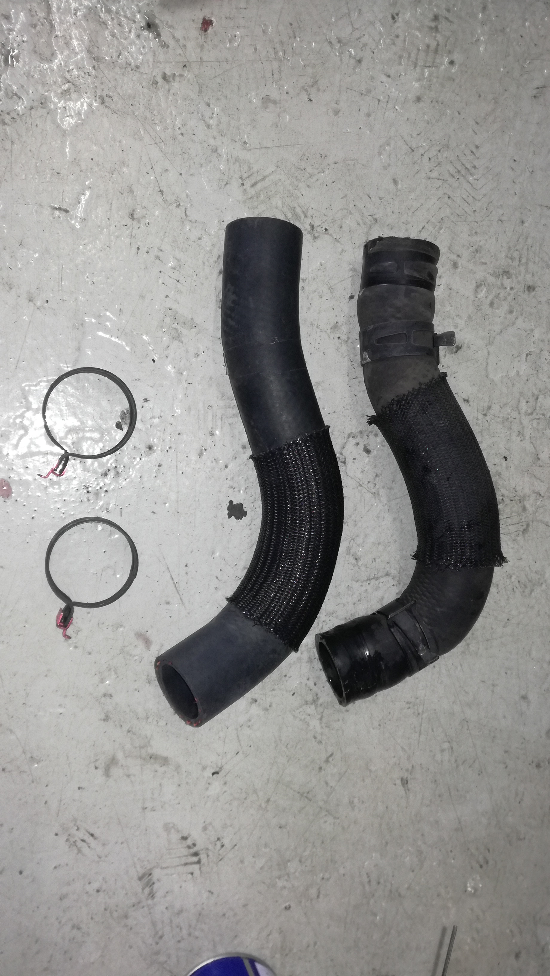 ホースかしめ部分より水漏れしておりましたので、ホースとクランプの交換です。