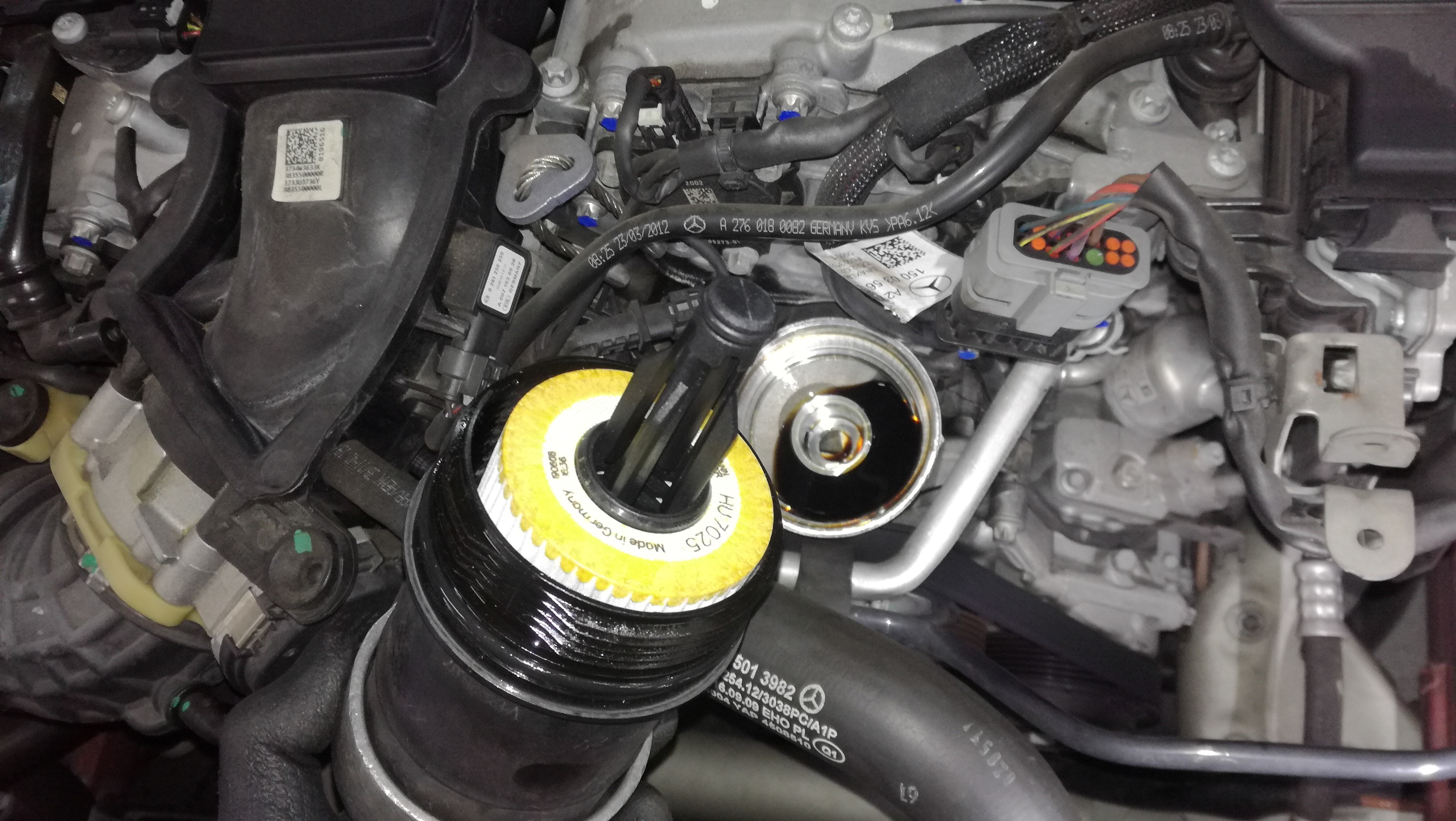 K様 ダイムラー エンジンオイル・オイルフィルター交換、その他ご依頼作業すすめております。