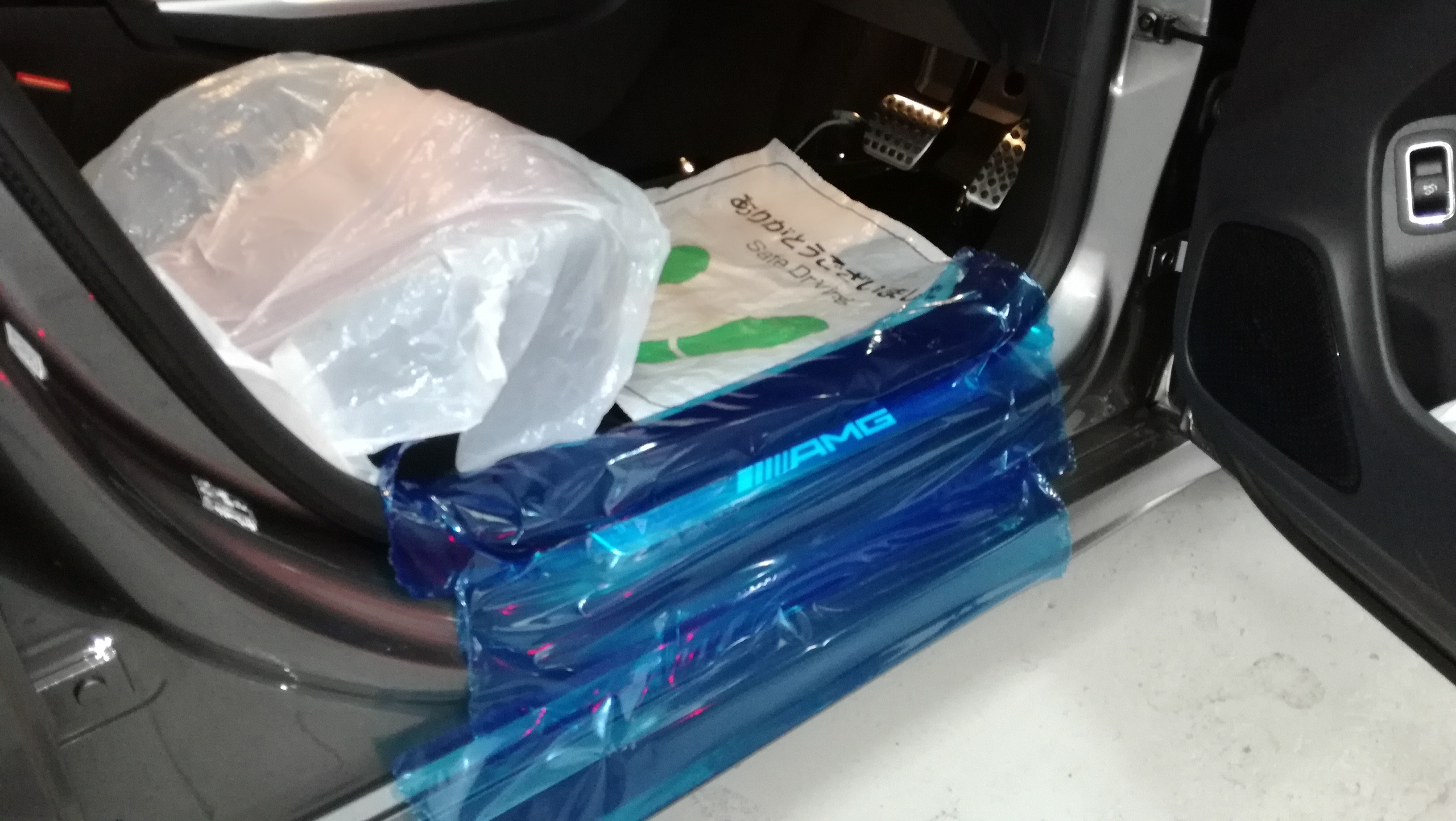 I様 W176 雨漏れにて、リアバンパーフラップ交換です。