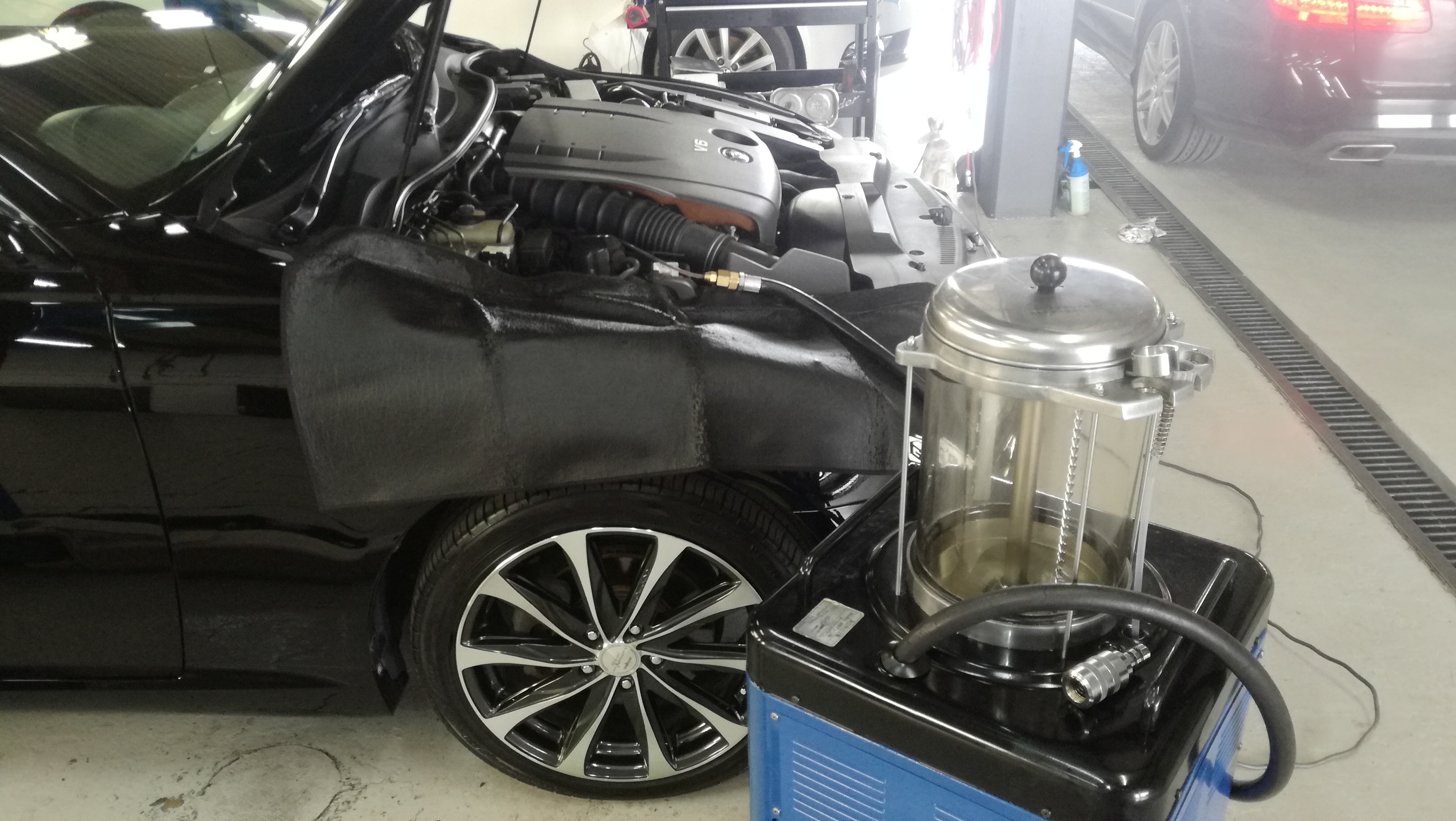 A様 W211 パッドセンサー点検作業、セーフティ点検実施です。