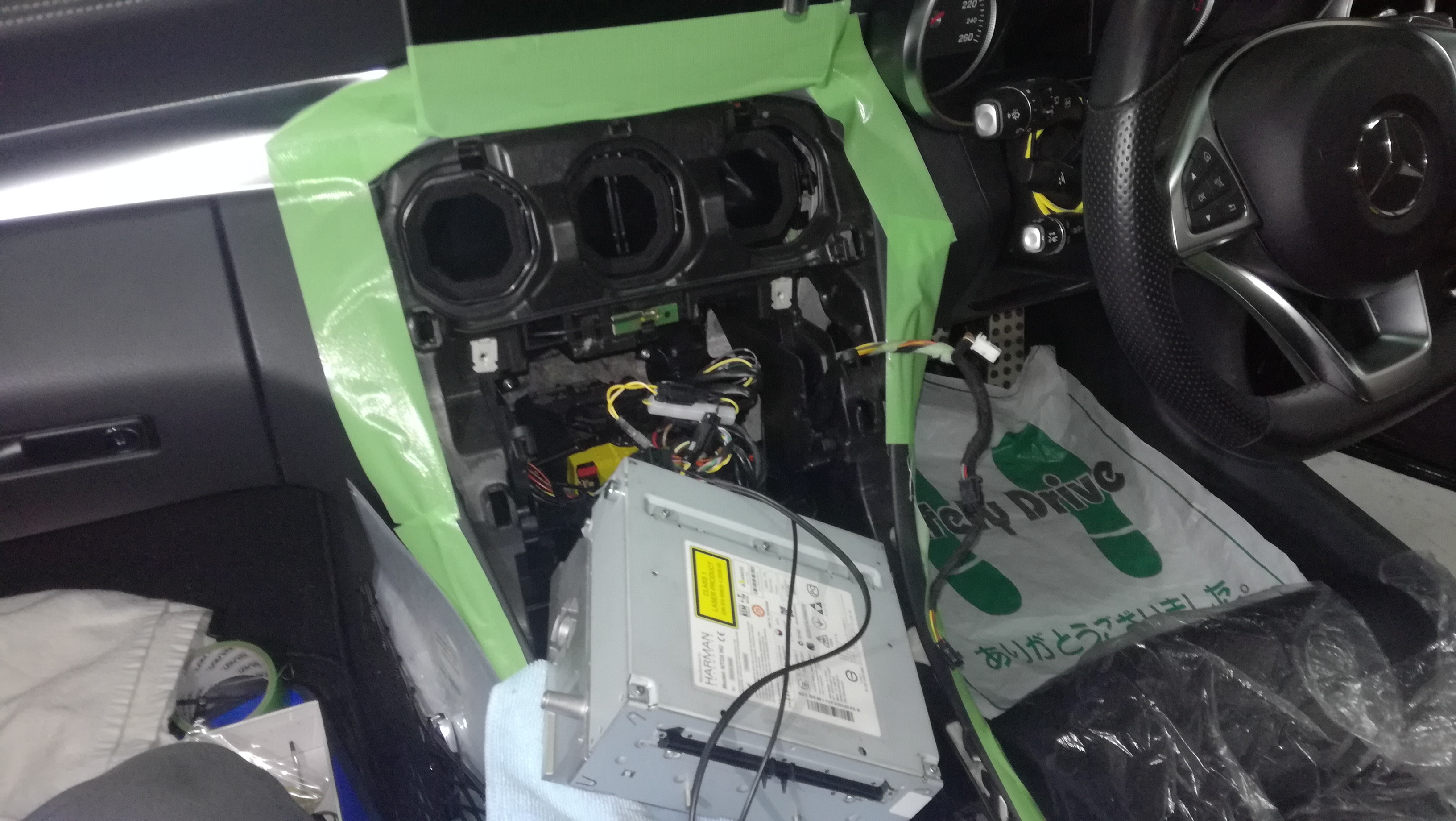 もともとこちらのCクラスには外部入力項目がないので、OBDにて外部入力項目をインストール