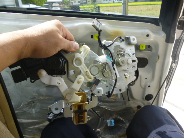スライドドアが外から自動で開かなくなっていた為、ドアロックユニットの交換をさせていただきました。