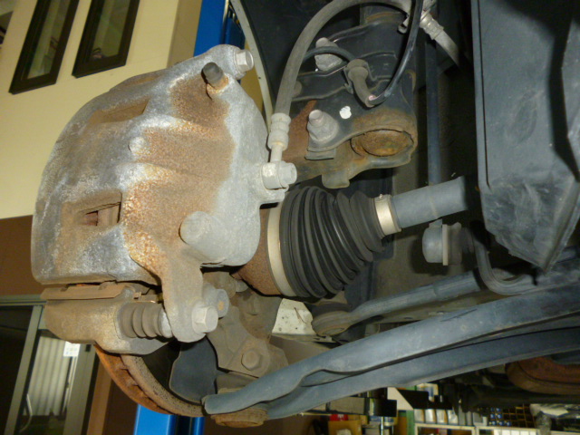 フロントブレーキパッド、タイロッドエンドブーツ左右の交換
