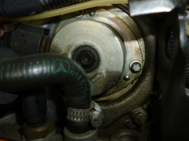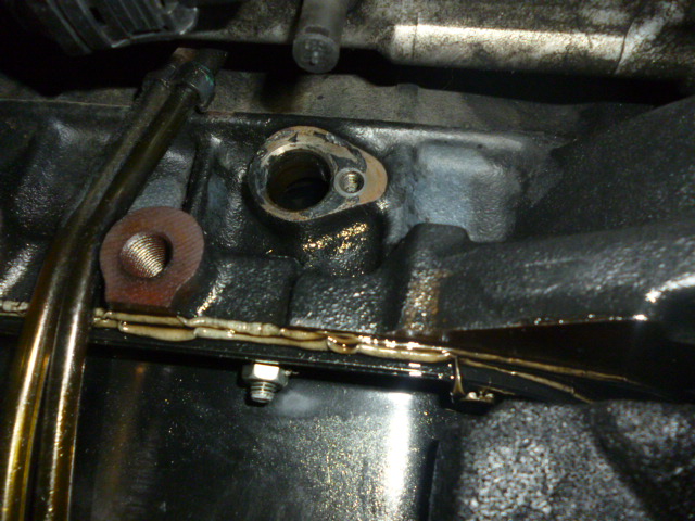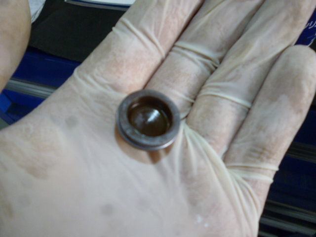 点検にてオイル漏れを発見。エンジンブロックのメクラキャップが破損しておりましたので至急部品手配し、交換です。